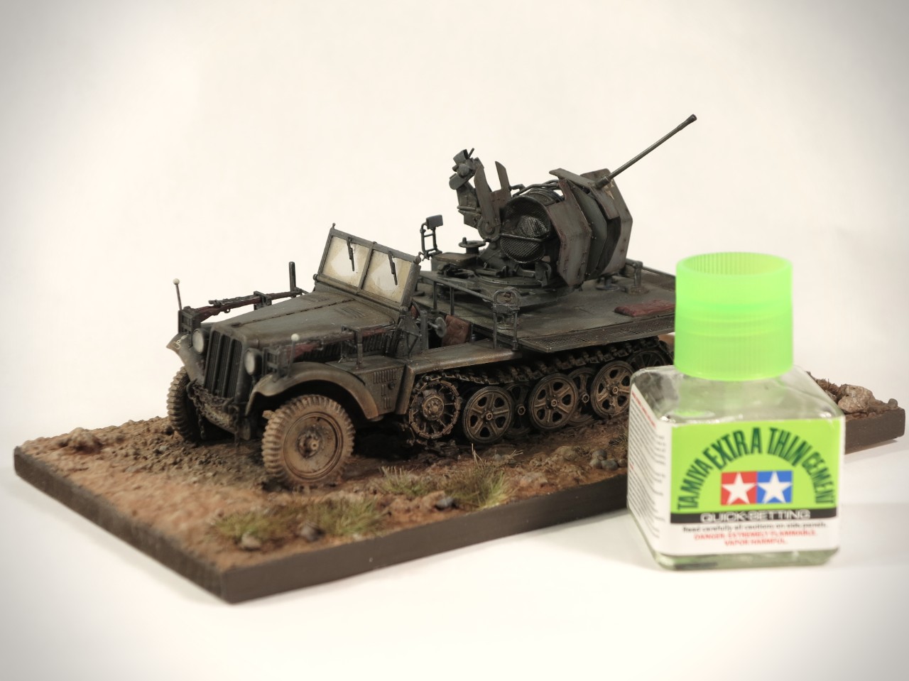 드래곤 1/35 Sd.Kfz 10/5 (Demag) + 2cm Flak 38 제품이고 아크릴 붓도색+유화 워싱을 사용했습니다.