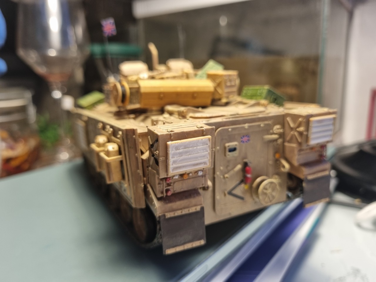 영국군 워리어 보병 장갑차입니다. 아카데미 제품으로 2003 이라크전 사양으로 제작했습니다. 사실... 영국 국기인 유니온잭에 끌렸습니다. *^^* 워낙 좋은 작례가 많아 제작 전 눈호강한 기억이 새롭습니다.