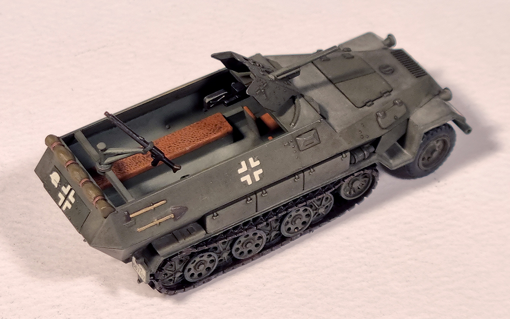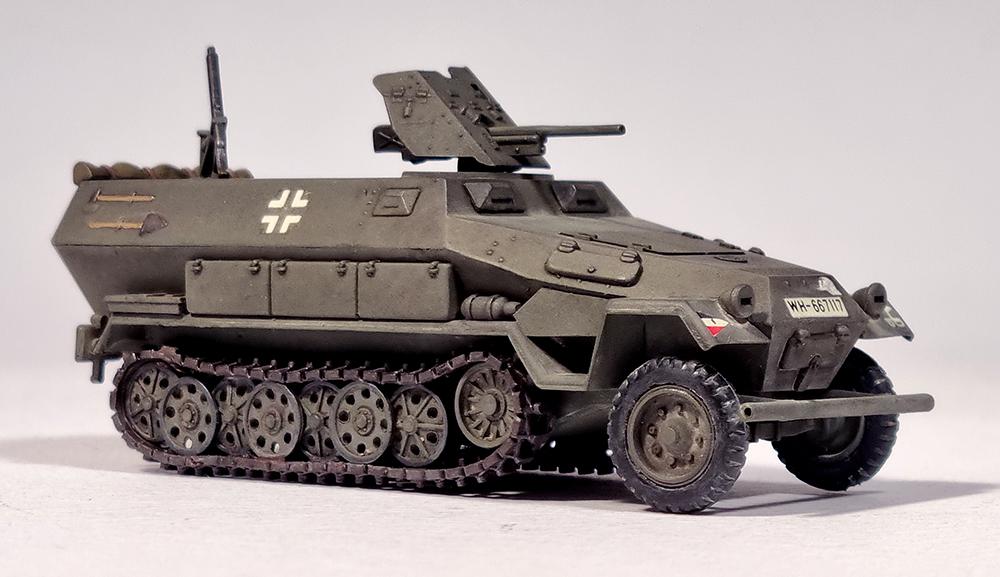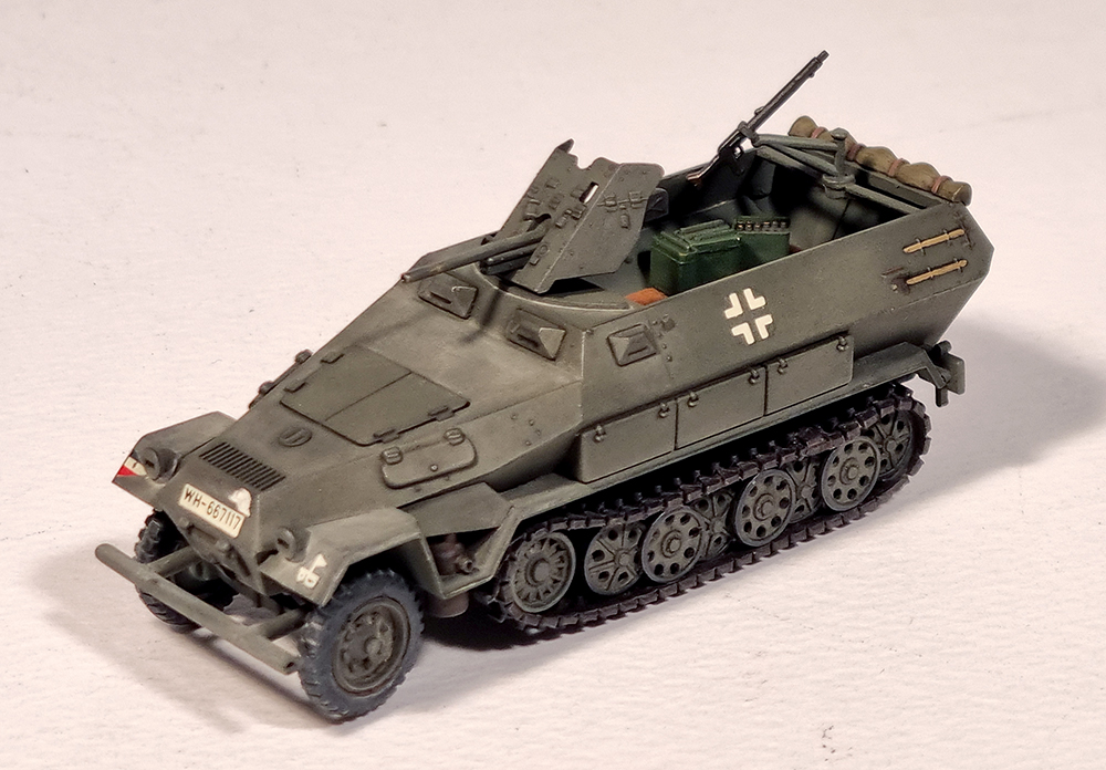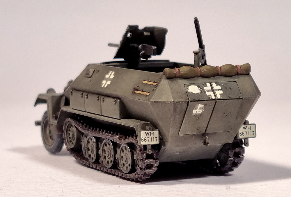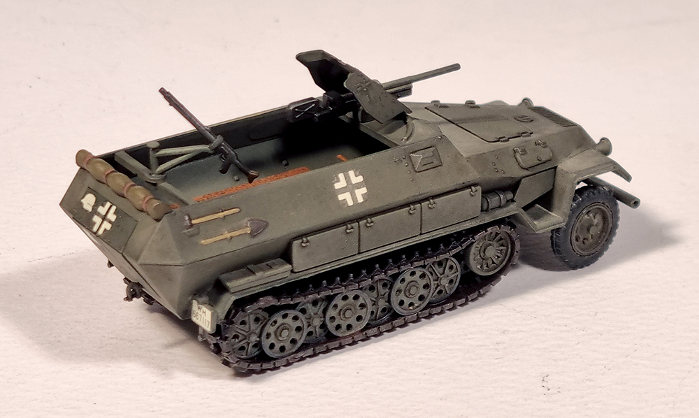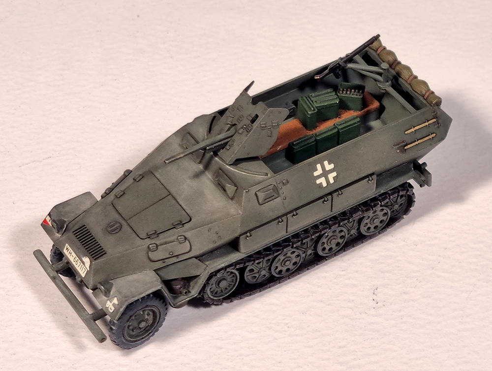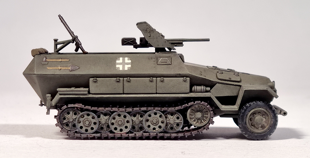 킷트는 1973년에 첫 출시된 것으로 거의 같은 시기에 발매된 같은 스케일의 Matchbox 킷트에 비해 꽤 디테일이 좋습니다. 궤도는 고무제이지만 순간접착제를 사용하면 그럭저럭 형태를 잡을 수 있습니다. 기본형인 sd.kfz. 251/1형도 선택할 수 있고 37mm포탄 케이스도 여러개 포함되어 있어서 당시의 킷트로는 높은 점수를 줄 수 있겠습니다.