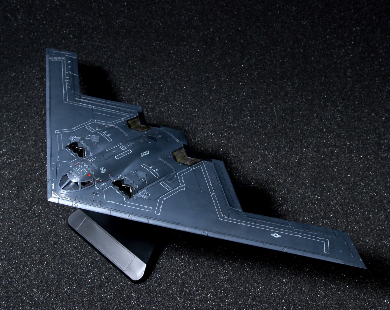 오로지 스폰지도색만으로 완성한 아카데미과학 1/144 B-2 스텔스 전략폭격기입니다.
