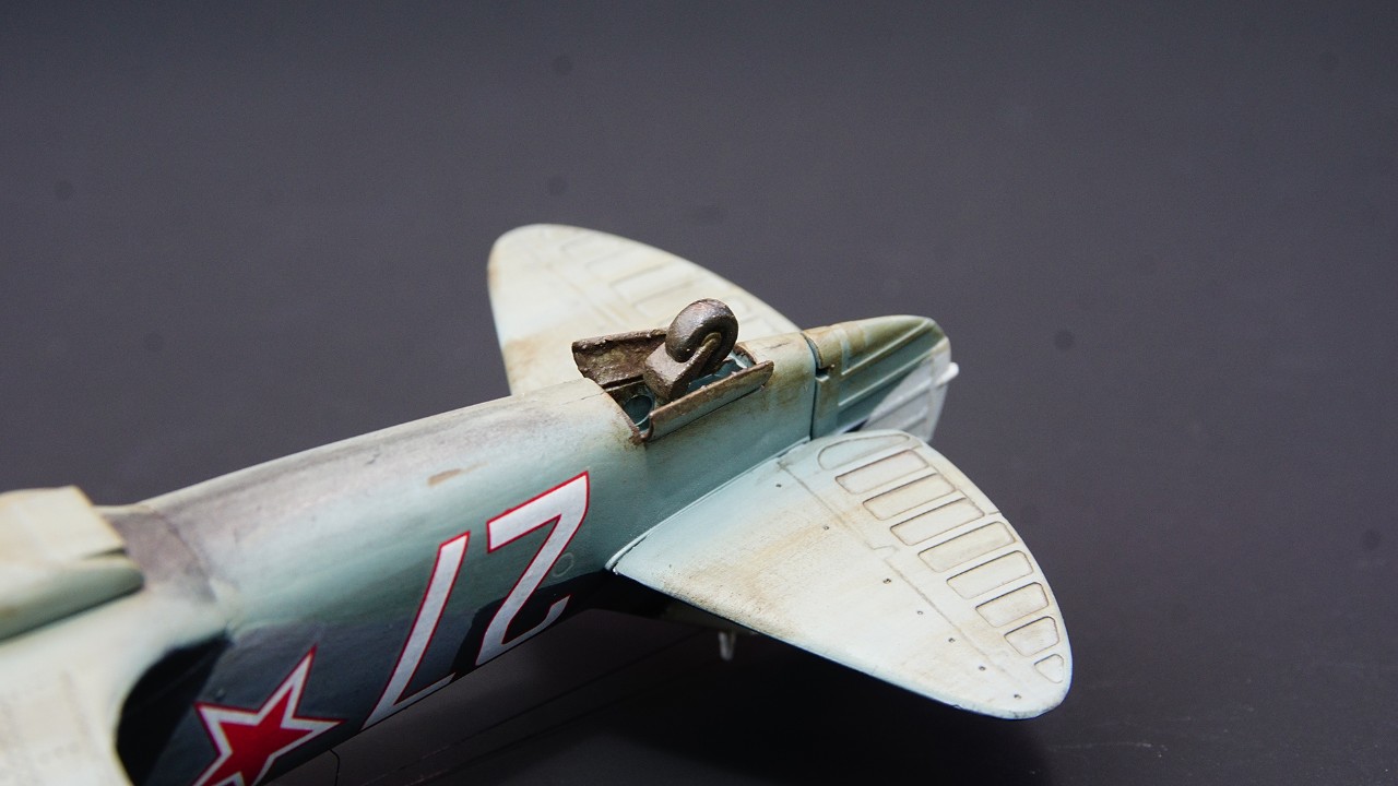 아카데미가 재현한 코제두브 탑승기 데칼은 종전 직전을 재현한것으로 초봄이였으니 소련군 비행장 특유의 비포장으로 인한 진흙과 흙먼지가 하면에 상당했을것으로 상상하고 웨더링하였습니다. 집에 촬영할만한 장소 같은게 딱히 없어서 자연광에서 찍다보니 상당히 웨더링한 색감이 진해보이는데 실제론 첫번째 사진 및 곧 등장할 하부를 촬영한 사진처럼 은은한 색감입니다.