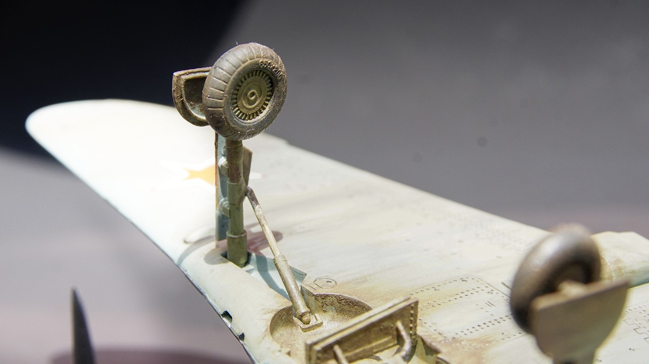 이 시절 소련 공군이 독특한 점은 하늘색의 하부 방청 도료를 랜딩기어 베이까지 전부 칠했더군요. 아무튼 랜딩기어 베이 내부 역시 랜딩기어가 닫히면서 헛도는 바퀴 때문에 접히는 과정에서 상당한 진흙이 튀었을것으로 생각해서 안쪽에도 발라주었습니다.