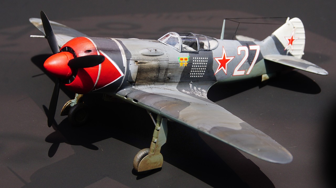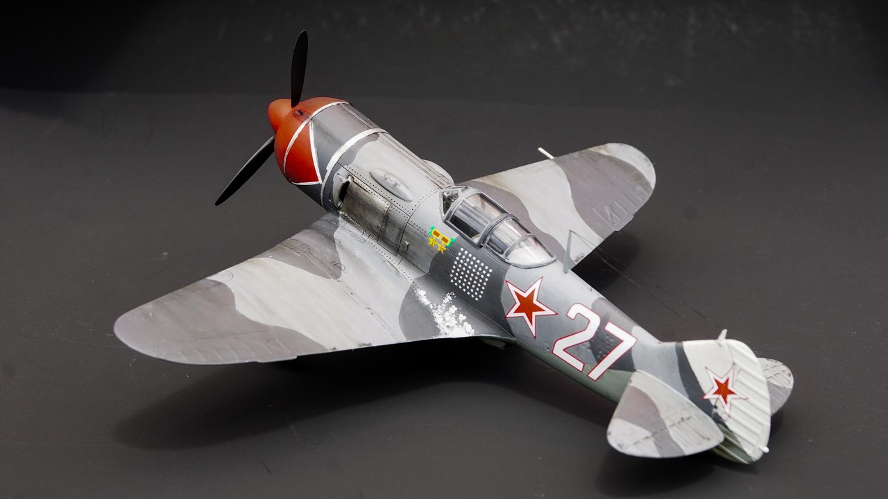 소련 전투기들은 무언가 특징이 캐노피 높이가 낮아서 조금 시야가 답답하지 않을까 싶은 느낌을 줍니다. 참, 수직 미익의 하얀색은 타미야 AS-20 Insignia White, 나머지는 모두 타미야 아크릴 붓도색으로 데칼에 빨간색/하얀색 삼각형이 있는줄 모르고 그것까지 마스킹 후 붓도색 했습니다... 그래도 두개씩 들어있는 코제두브의 훈장과 킬마크 덕분에 한번 더 만들 수 있는 데칼 여유분이 생겼으니 좋은거겠죠..? 3색 위장에 쓰인 도료만 대표적으로 꼽아보자면 상부 연회색 = XF-53 내추럴 그레이, 상부 진회색 = XF-63 저먼 그레이, 하부 방청색 = XF-25 라이트 씨 그레이 입니다.