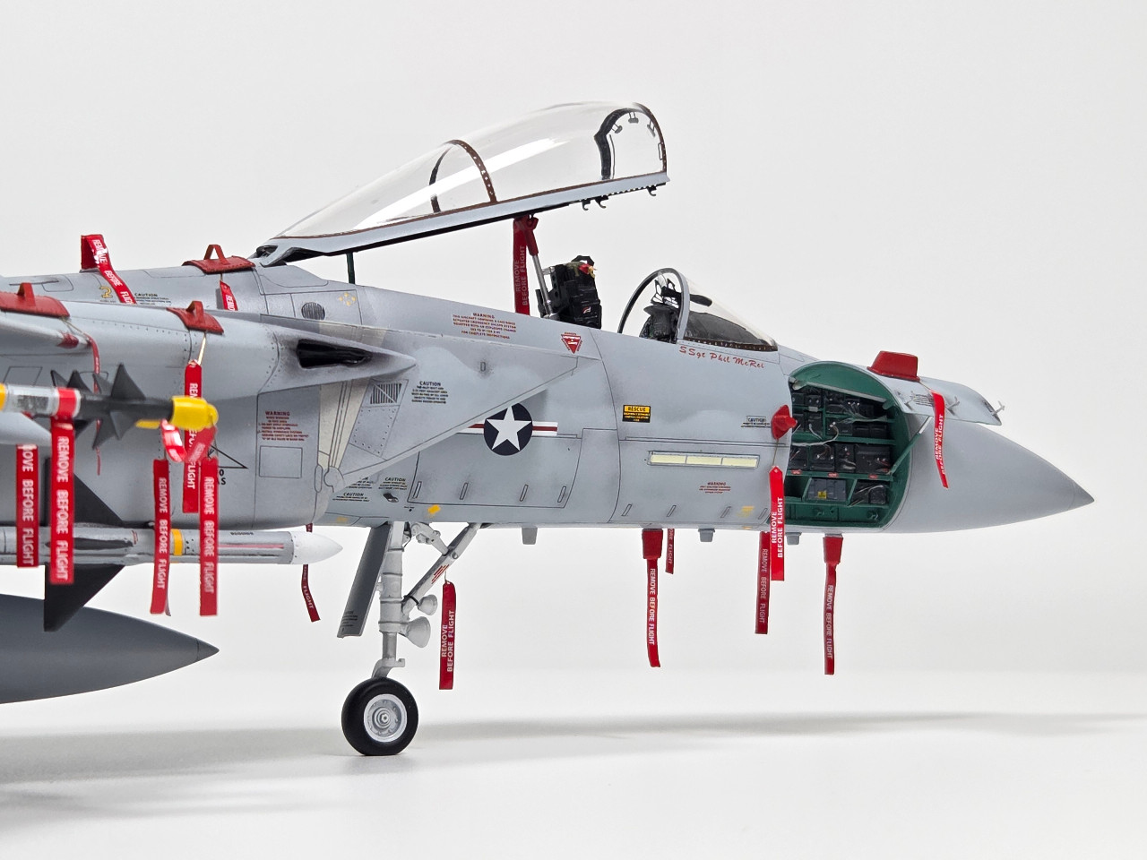 하세가와 1/48 F-15C를 베이스로 GWH의 수직/수평미익을 이식하여 제작하였습니다. 기수 Avionics Bay는 Aires 제품이고, 그 밖의 엔진노즐, 사출좌석 등은 DEF사의 3D 프린팅 별매품을 사용하였습니다.