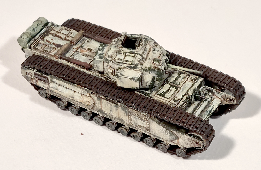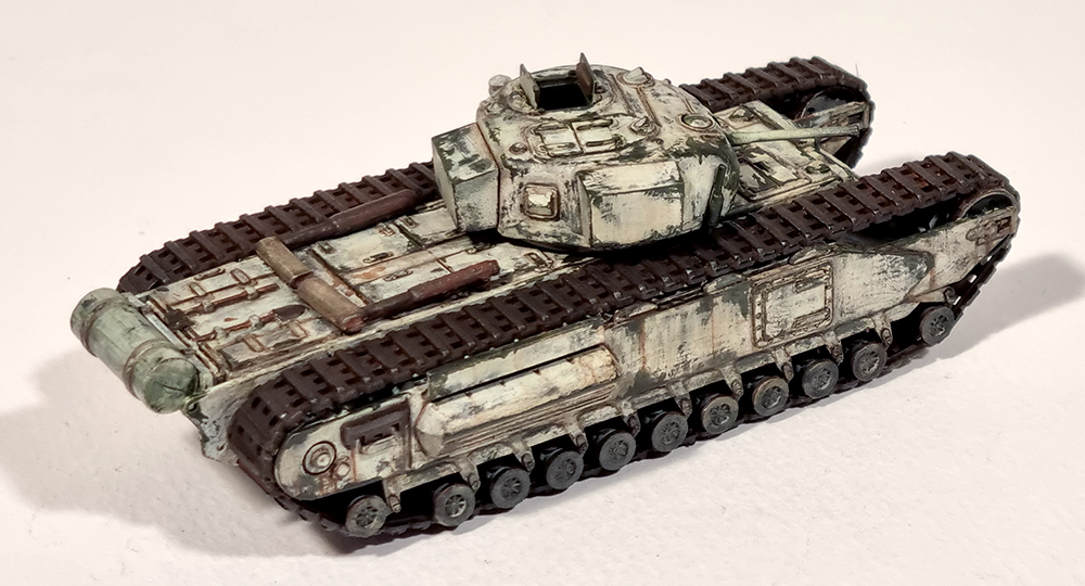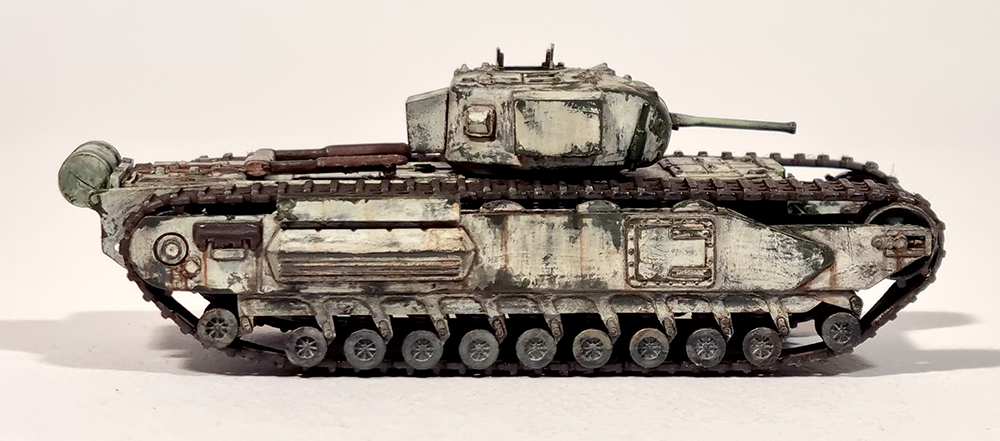 녹색 계열로 칠한 처칠 전차가 몇개 있어서 동계위장으로 흰색을 칠해 봤습니다만, 고증과는 거리가 멀어져 버린 느낌입니다.