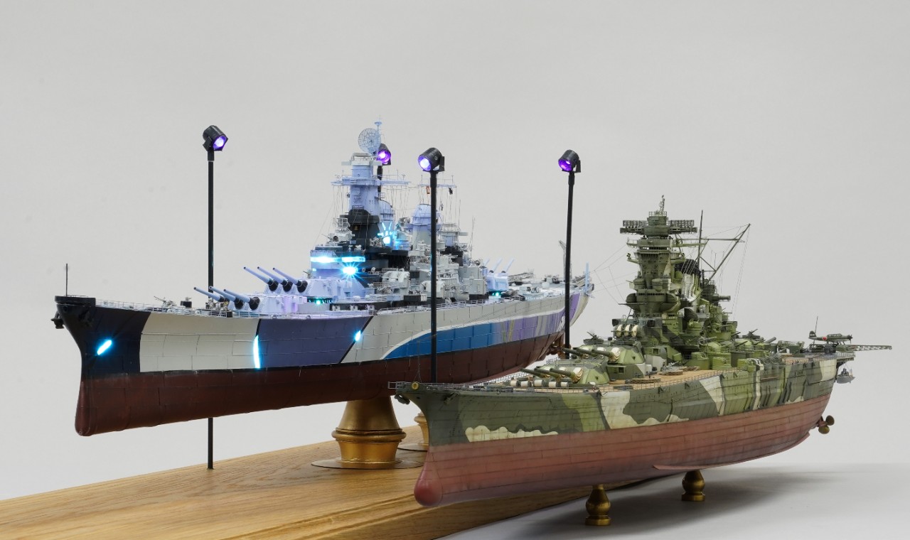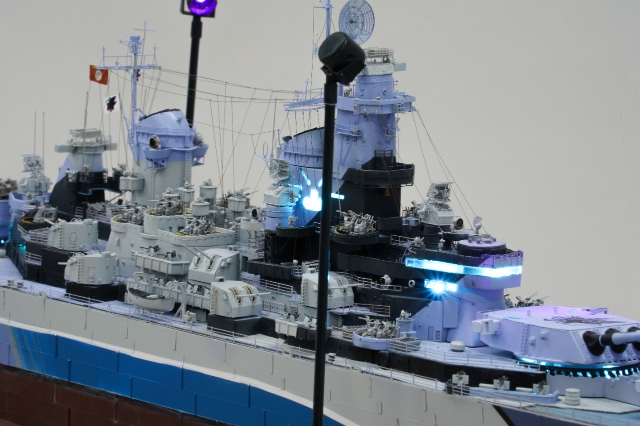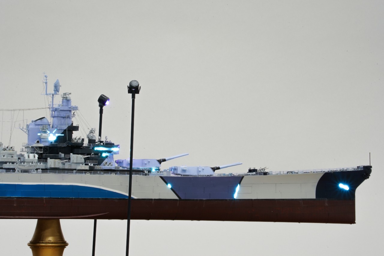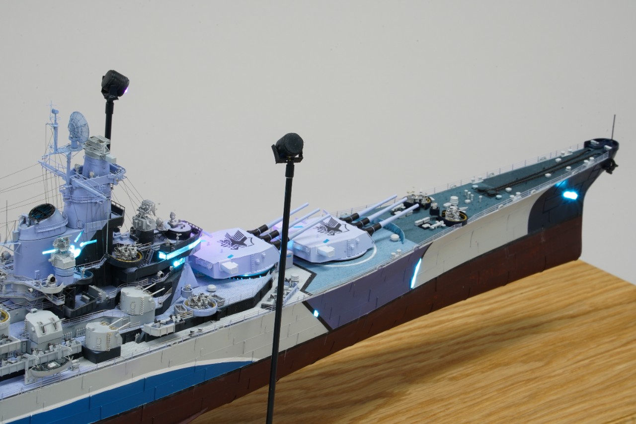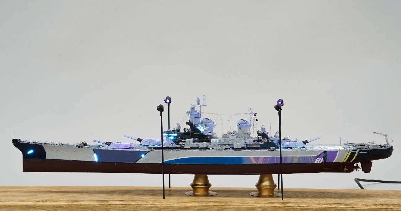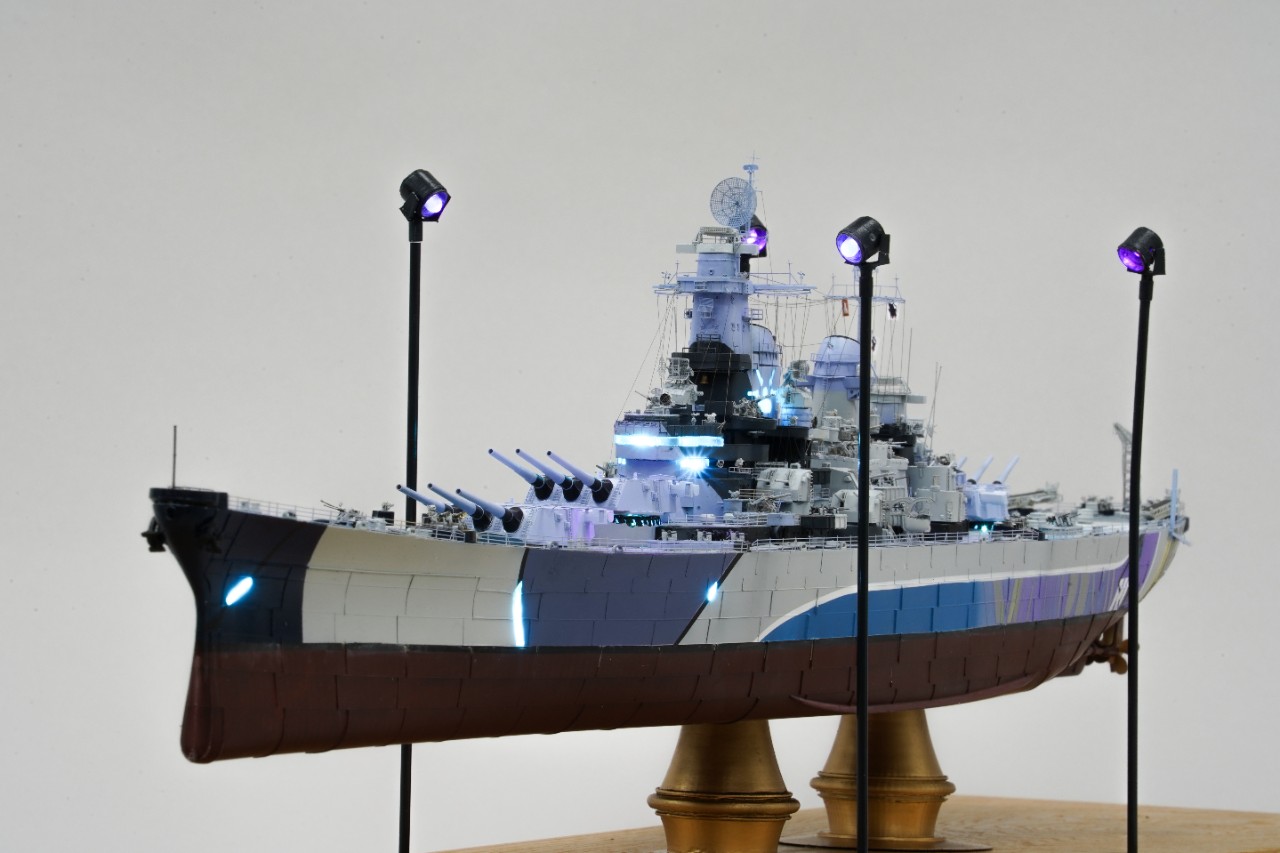 이번 작품은 world of warship과 벽람항로의 콜라보를 통해 나온 미국 9티어 전함 아이오와의 벽람항로 뉴저지버전 전용위장입니다. 개인적으로 좋아하는 배이고자 캐릭터라 작년부터 깨작대며 올 초에 완성, 하비페어에 들고갔었네요. 킷은 베리파이어의 1/350 뉴저지 킷에 동사 미주리 전용에칭을 베이스로 하였고 연장 오리콘은 벙커스튜디오의 제품을, SK-2레이더와 주포 사통장치는 중국의 3D프린팅 업체의 제품을 사용했고, 기타 자잘한 자투리 에칭등등을 사용하고, 선체 디테일이 많이 아쉬워 용접선은 전부 파고 양각으로 심어줬습니다. 베이스는 어포던스에 주문제작하였습니다.