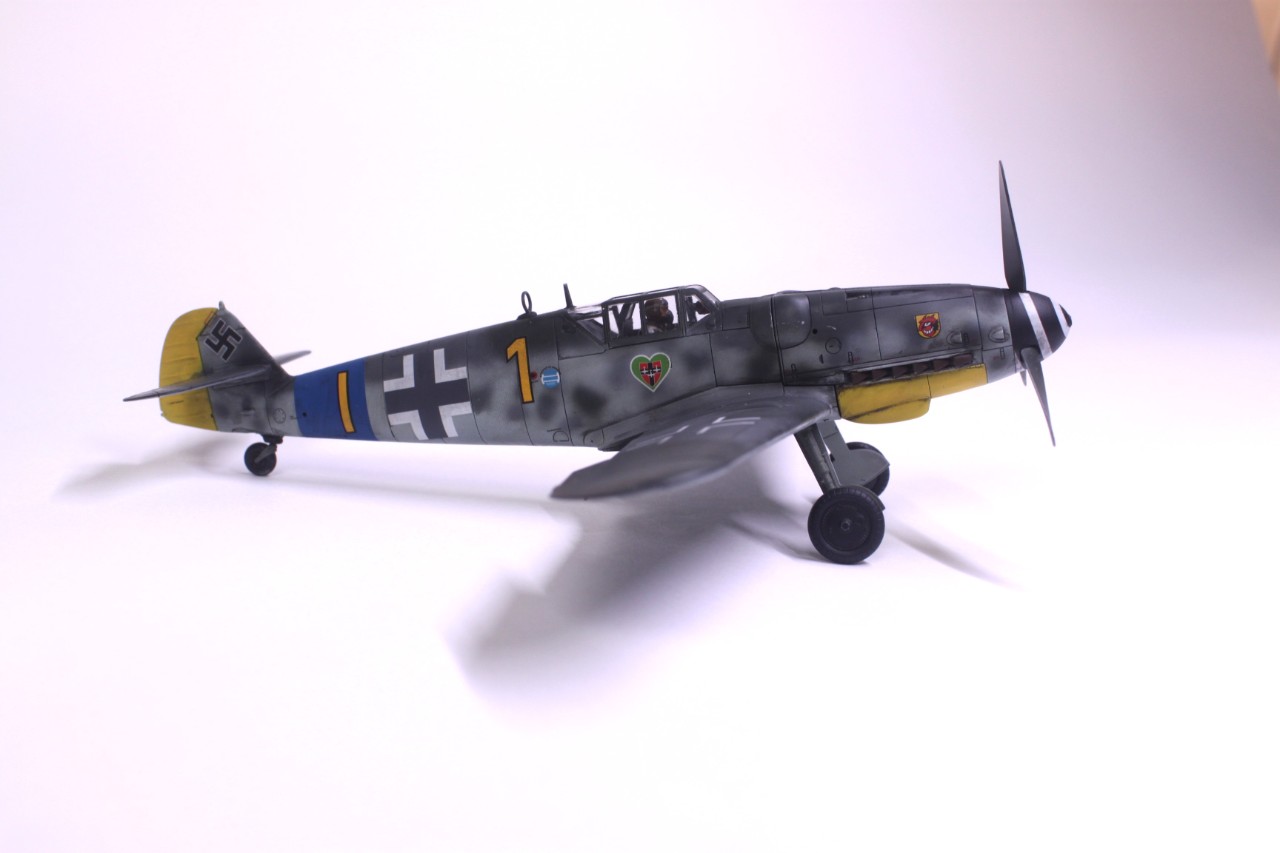 안녕하세요, 처음 인사드리는 사이퍼입니다. MMZ에서도 활동을 해보려고 가입만 한 후 계속 구경만 하다가 처음으로 작품 올려봅니다. 킷은 타미야의 Bf109 G-6입니다. 조립성이 매우 우수해서 불필요한 몰드를 지우는것 외에는 퍼티조차 사용하지 않았습니다. 제작에 어떠한 어려움도 없었고 마스킹 실까지 넣어줘서 너무 편했습니다. 별매는 따로 사용하지 않고 스트레이트로 완성했습니다. 디테일도 리벳이 거의 없는 것을 제외하면 상당히 좋고 특히 엔진이 재현돼 있는데다 자석으로 부품 탈부착까지 가능한게 충격이었습니다. 도색은 독일 루프트바페 특유의 위장패턴을 부족한 실력으로 재현하려다 보니 어설퍼졌습니다. 주익의 위장도 원래 마스킹으로 했다가 부자연스러워서 프리핸드로 덧댔더니 이상하네요. 도색에 까짐도 많습니다. 초보의 실수 정도로 귀엽게 봐주셨으면 합니다^^;