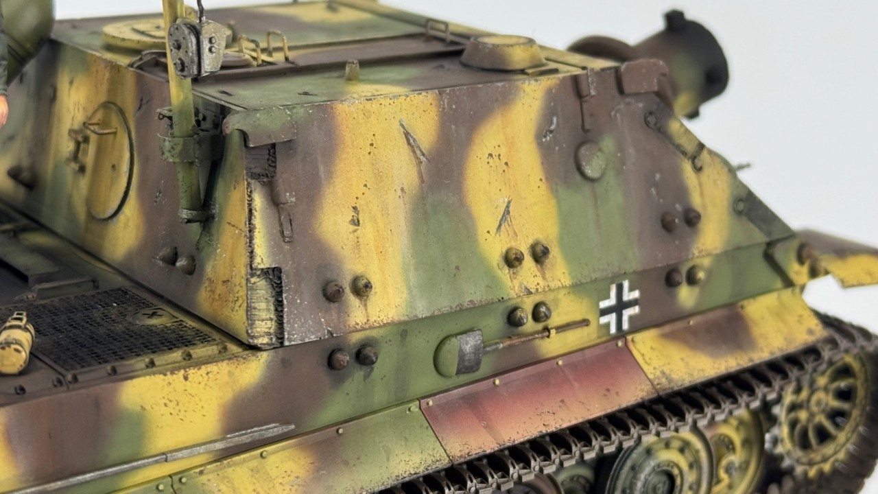 스펀지 치핑과 유화물감을 사용한 웨더링이 되겠네요.