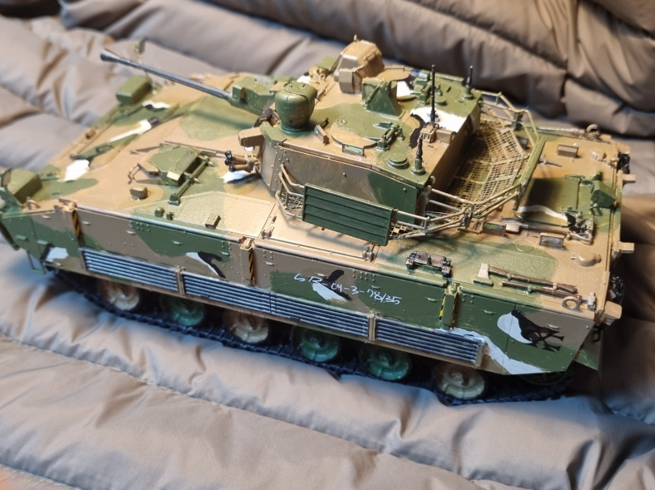 옆면 분필로 쓴 글도 선택해 부착할 수 있었습니다. 아카데미 실력이 카토르그라프 이상 이었습니다. 여러모로 만족한 작업이었습니다. 아카데미가 계속 국산 군장비를 뽑아주기를 기대합니다.