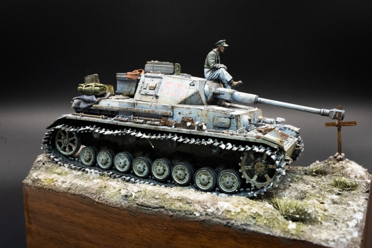 앞서 제작한 KV-1 디오라마와 동일한 컨셉으로 배치만 살짝 다르게 하여 겨울 조경 연습용으로 제작하였습니다.