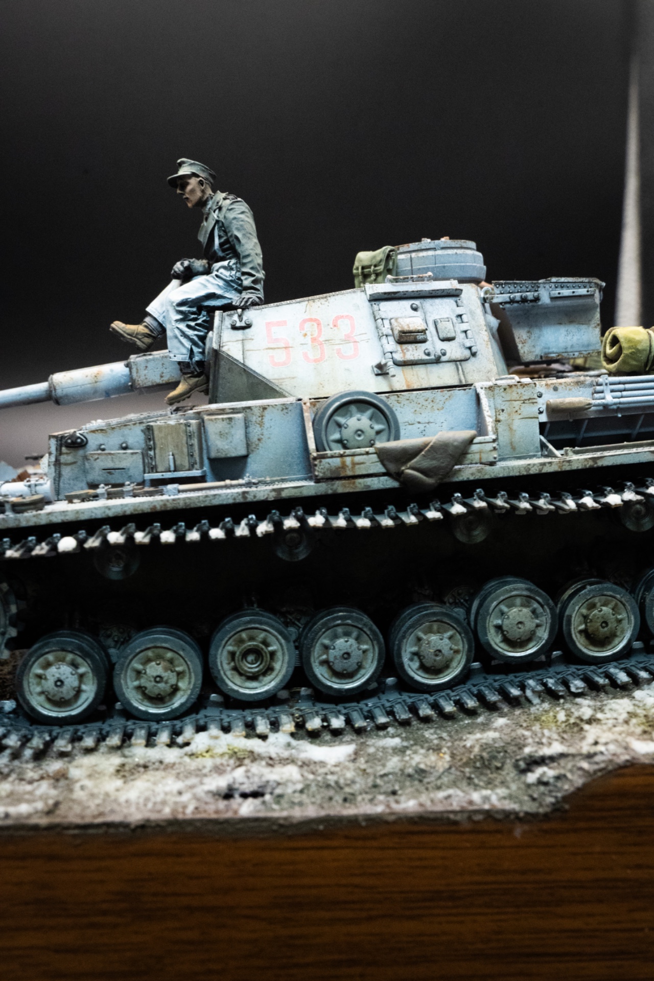 동계위장 차량은 녹 표현시 너무 도드라지지 않게 잘 블렌딩 하는것이 중요할것같습니다. 여기서도 하얀 차체색 대비 너무 튀네요