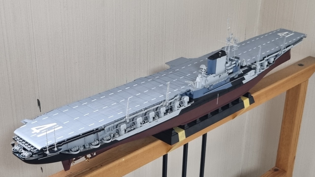 함재기 구성은 f4u 콜세어 전투기 16대에 sb2c 헬다이버 폭격기 18대 구성으로 만들었습니다.