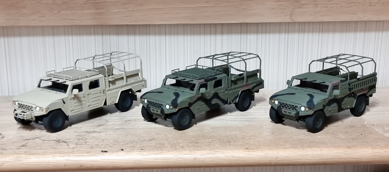 이렇게 소형전술차량 카고버전 3종을 마무리하였습니다모형취미 하기를 정말 잘한거 같고 운이 좋아이렇게 자작모형까지 할수 있는 삶을 살수 있어항상 감사한 마음입니다많은 분들의 응원과 격려도 크나큰 힘이 되었습니다다시한번 감사드립니다