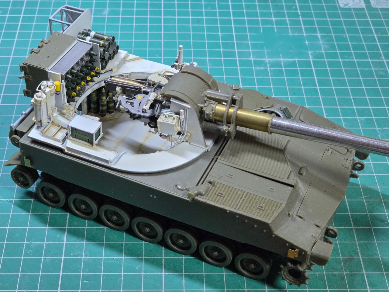 장전 유닛의 포탄 트레이 위에 황동제 155mm 포탄을 올려봤습니다~