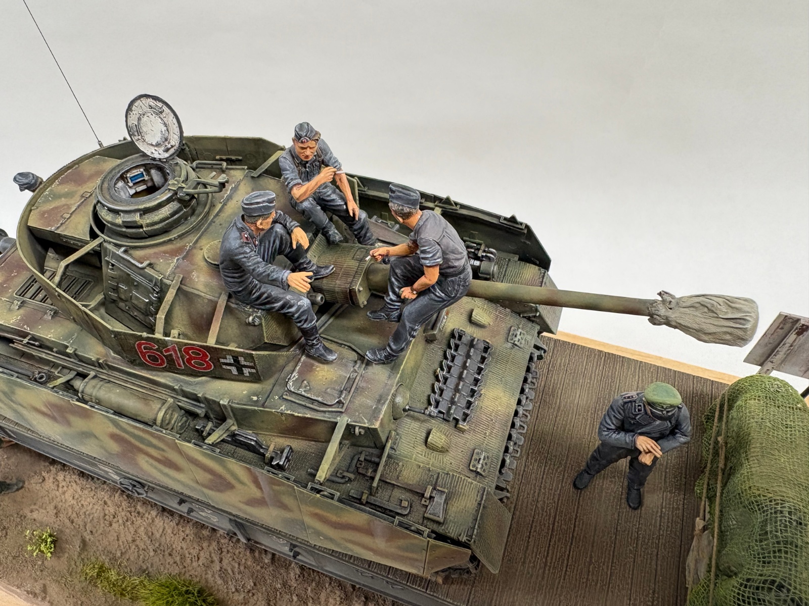 고증사진을 보니 티이거같은 대형탱크의 경우, 기차(Schwerer Plattform Wagen)상판에체인으로 전차의 네 모서리를 묶어놓지만, 4호전차의 경우 캐터필러 아래 나무받침으로 받쳐놓는 사진들이 있어서 따라해서 만들어 보았습니다. 위장망의 보급품 그리고 보급하사관 등은 상상력을 동원했습니다. 포마개는 자작인데 좀 엉성하네요 ㅠㅠ
