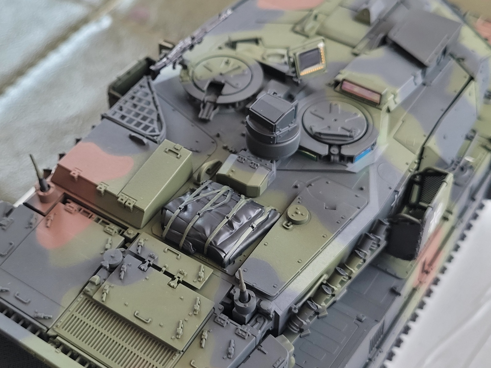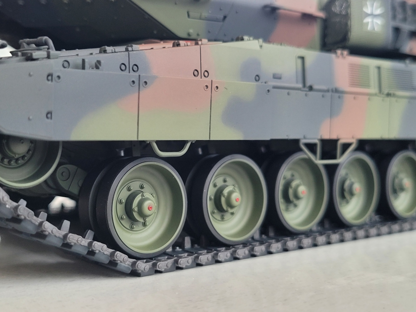 타미야 레오파드2a7 입니다. 타미야란 브랜드답게 조립성은 좋으나 많은 파츠와 런너들이 타미야도 타브랜드의 트랜드에맞게 변화된 모습을 보여주는 제품같습니다. 동봉되있는 도색가이드참고후 도색하였으며, 디테일하게 가이드도 잘 되있습니다.