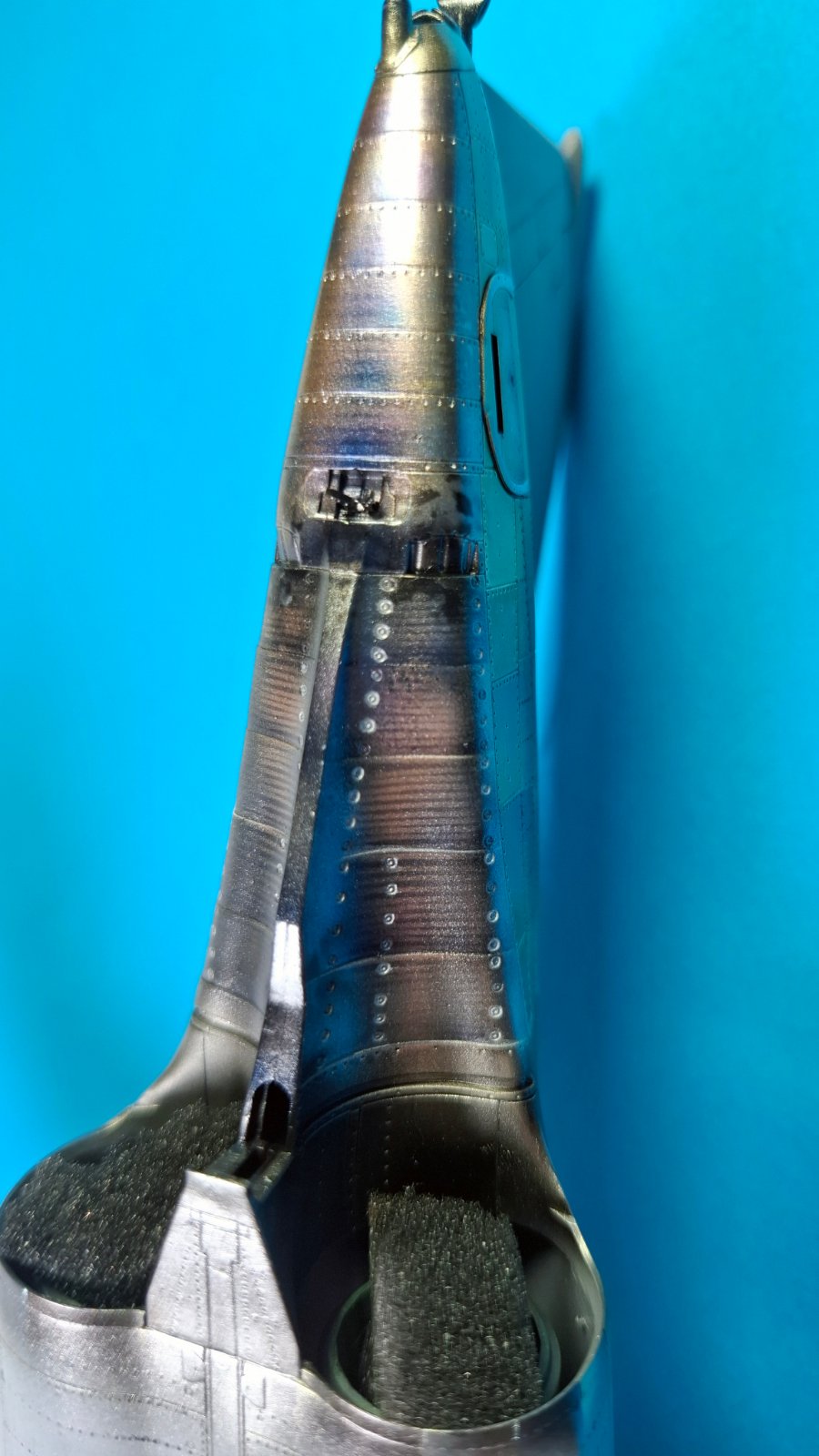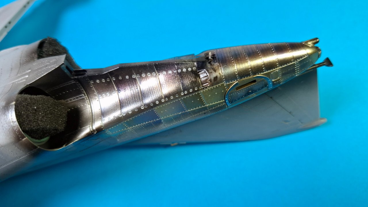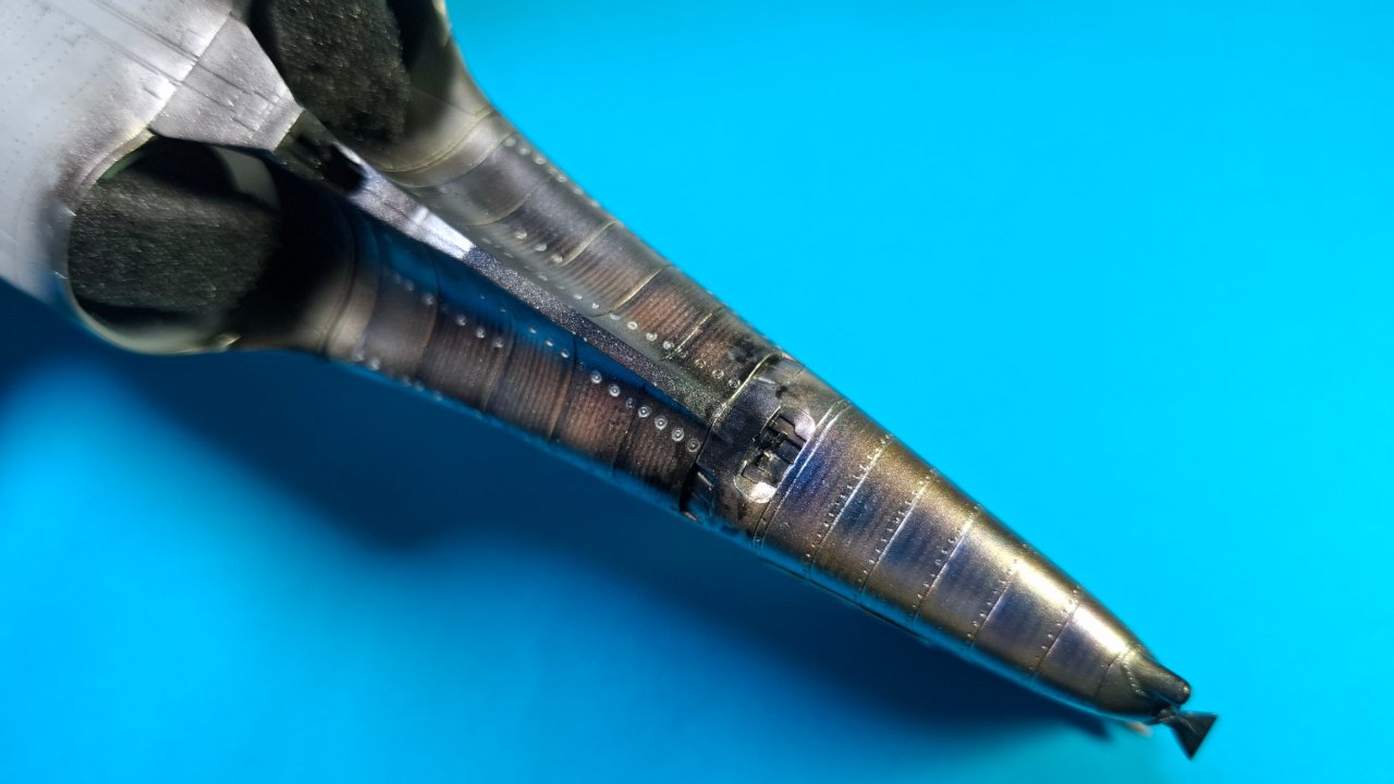 이번 영상에서는 엔진과 노즐 그리고 어레스팅 훅을 도색했습니다. 가이아노츠와 GSI 메탈릭을 위주로 사용했고 클리어 컬러의 사용비중을 대폭 줄였습니다. 노즐은 레스킷 제품입니다.