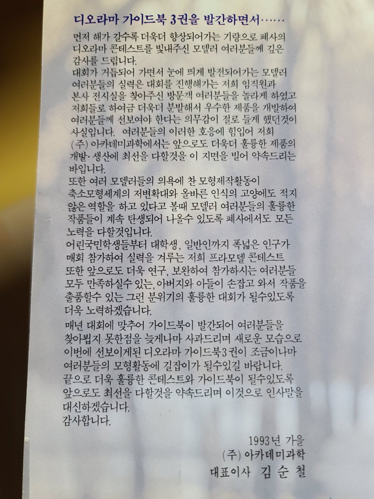 디오라마 가이드북 & 콘테스트작품집 3권 인사말
