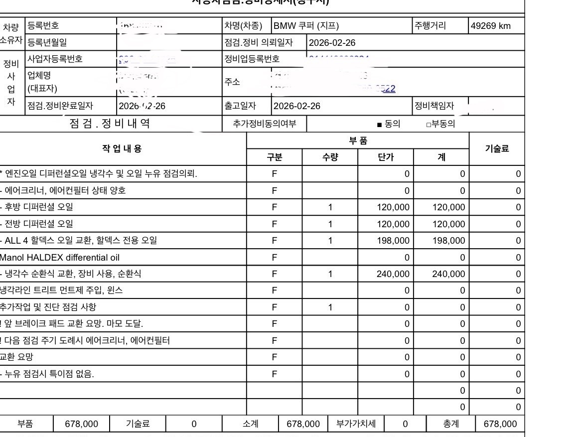 앞뒤 디퍼오일에 할덱스 오일, 냉각수까지 교체했는데요