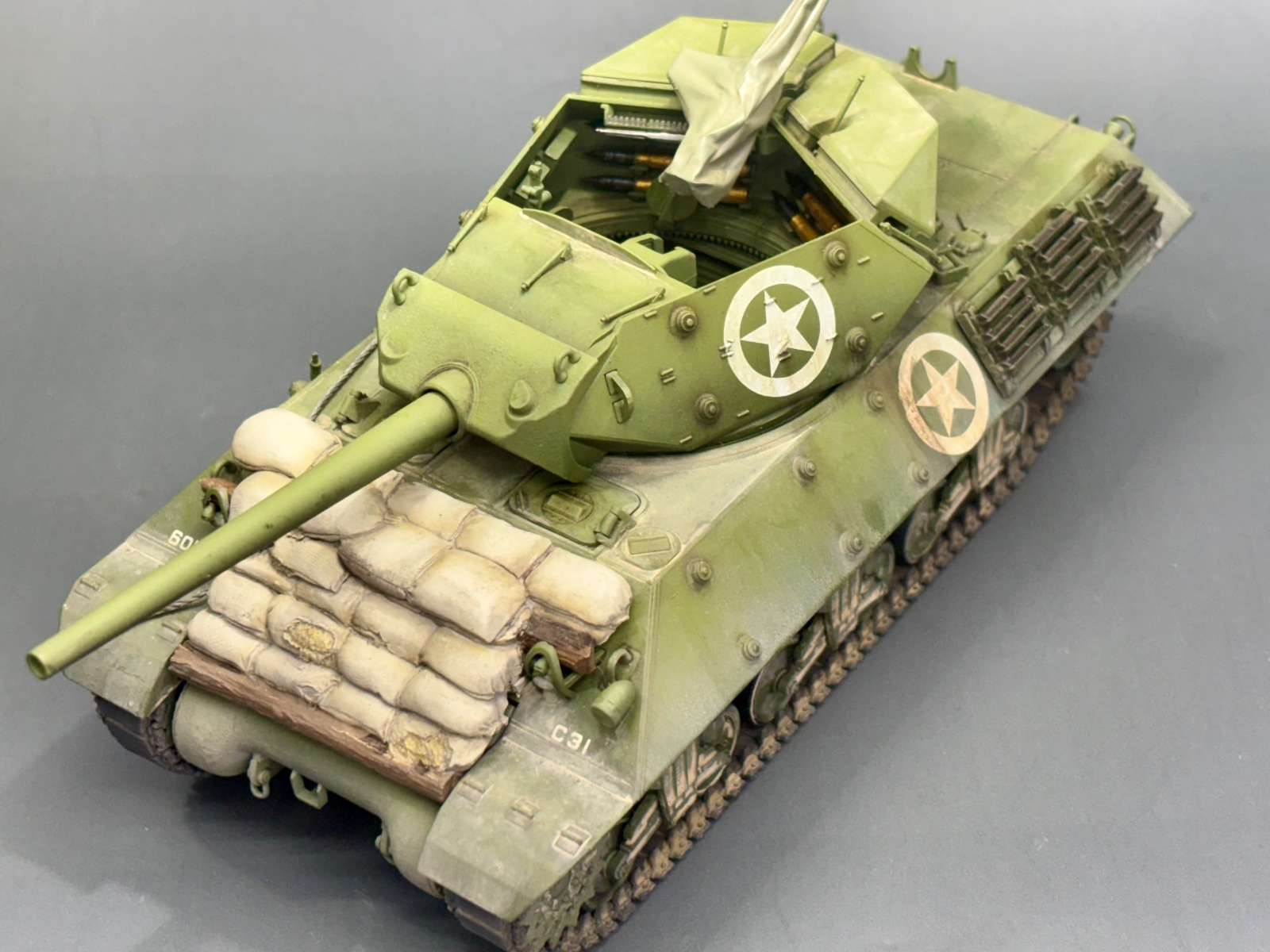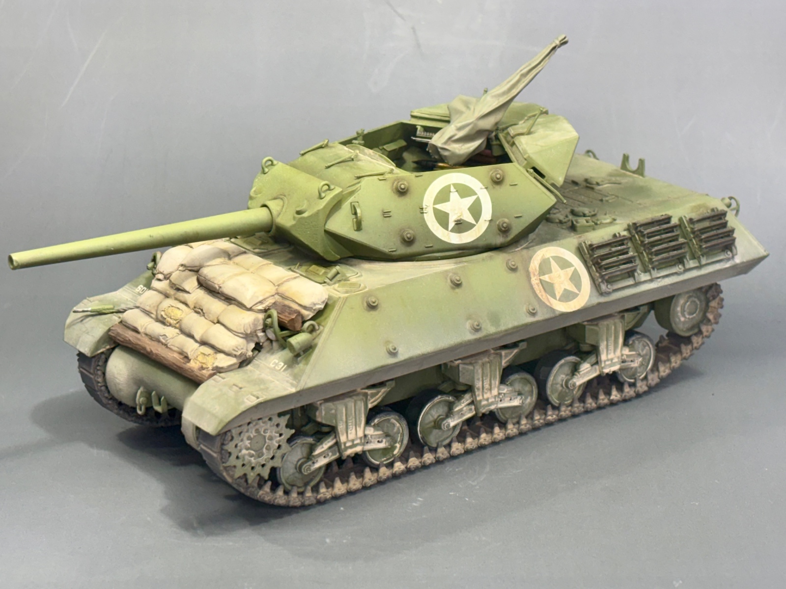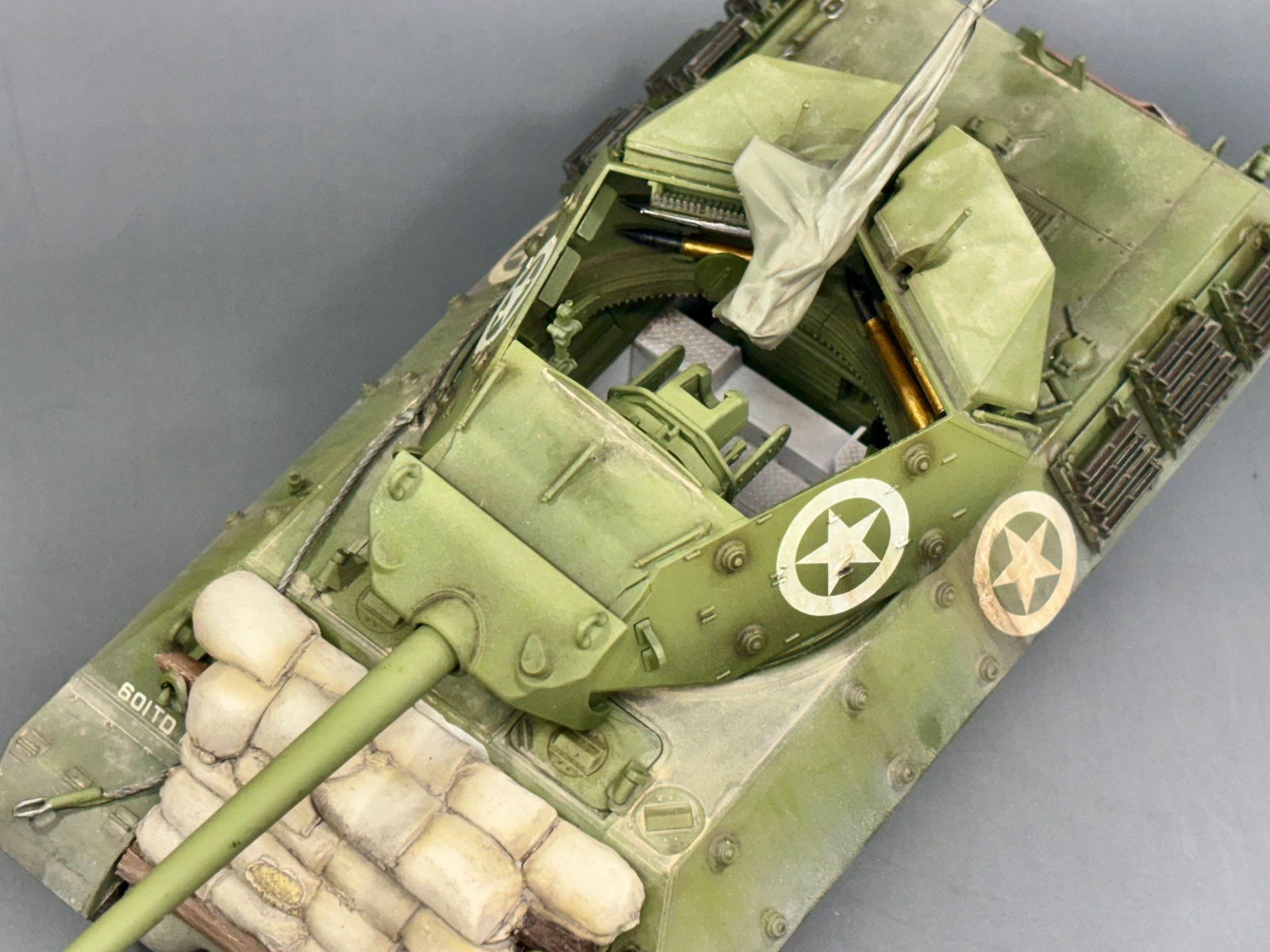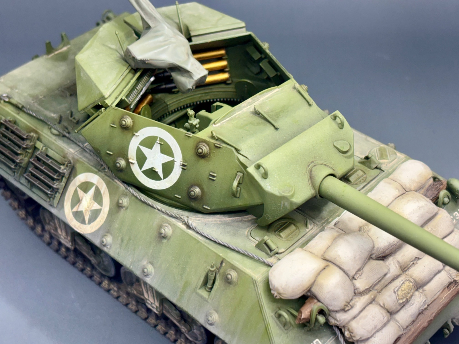 타미야 키트에 데프모델 메탈포신, 모래주머니, 방수포에 덮인 M2를 적용하였습니다.