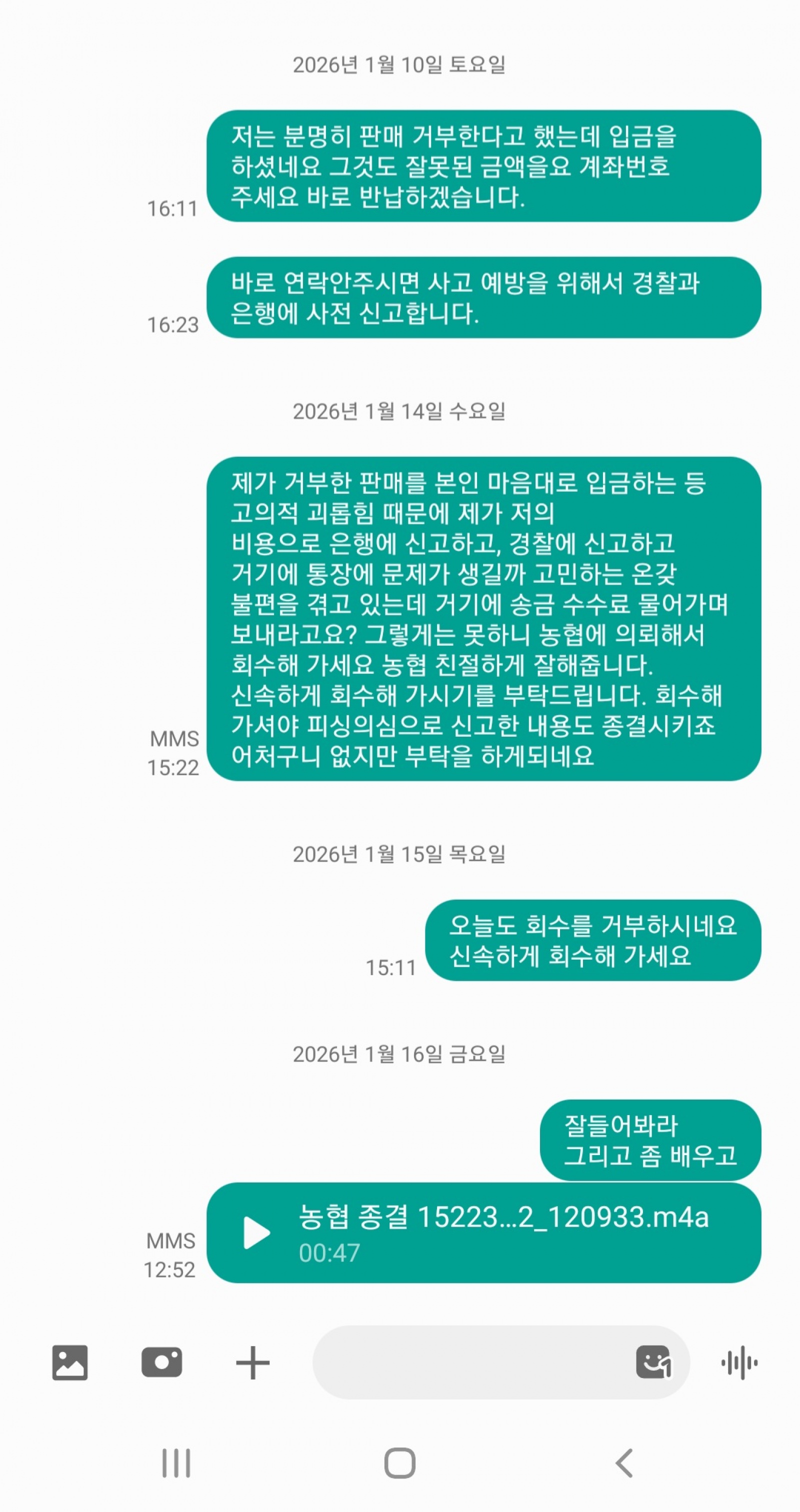 그래서 여러차례 반환하겠으니 계좌를 달라 요구했으나 일체의 답변이 없어 통장묶기 피싱 범죄가 의심되어 제가 직접 은행에