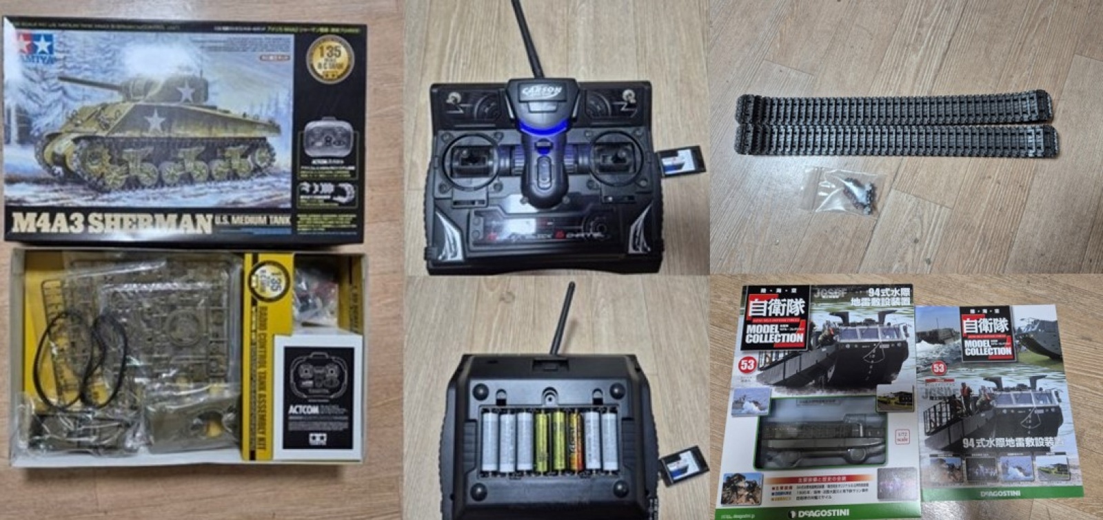 데아고스티니 Hasette 1/16 풀메탈 10식 전차 완성품, 1/35 타미야 셔먼 RC탱크 미개봉, 6채널 2.4Ghz 타미야 완벽호환 풀오퍼레이션 셋 포함되는 조종기 저렴하게 팝니다. 사실분은 공일공-육육75-육1육4로 연락주세요. 중고거래상 반품, 환불은 불가하므로 양해부탁드립니다.