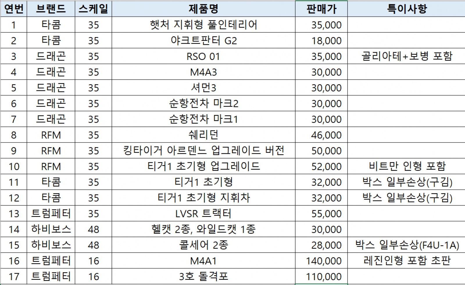 1/16 스케일은 배송비 포함입니다.(부피 및 무게로 인한 손상우려로 타 제품과 합배송은 어렵습니다)