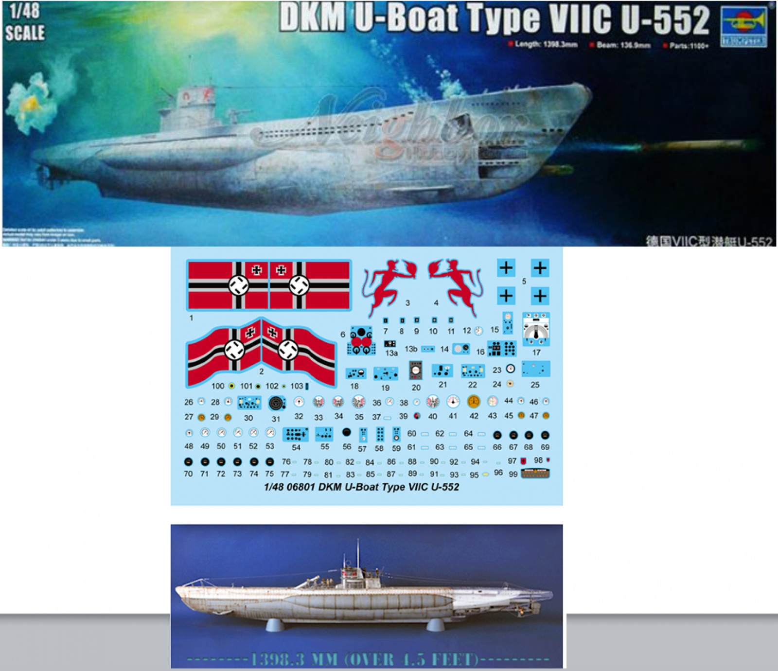 1/48 DKM U-Boat Type VIIC U-552 w/Interior 잠수함 키트 판매합니다.