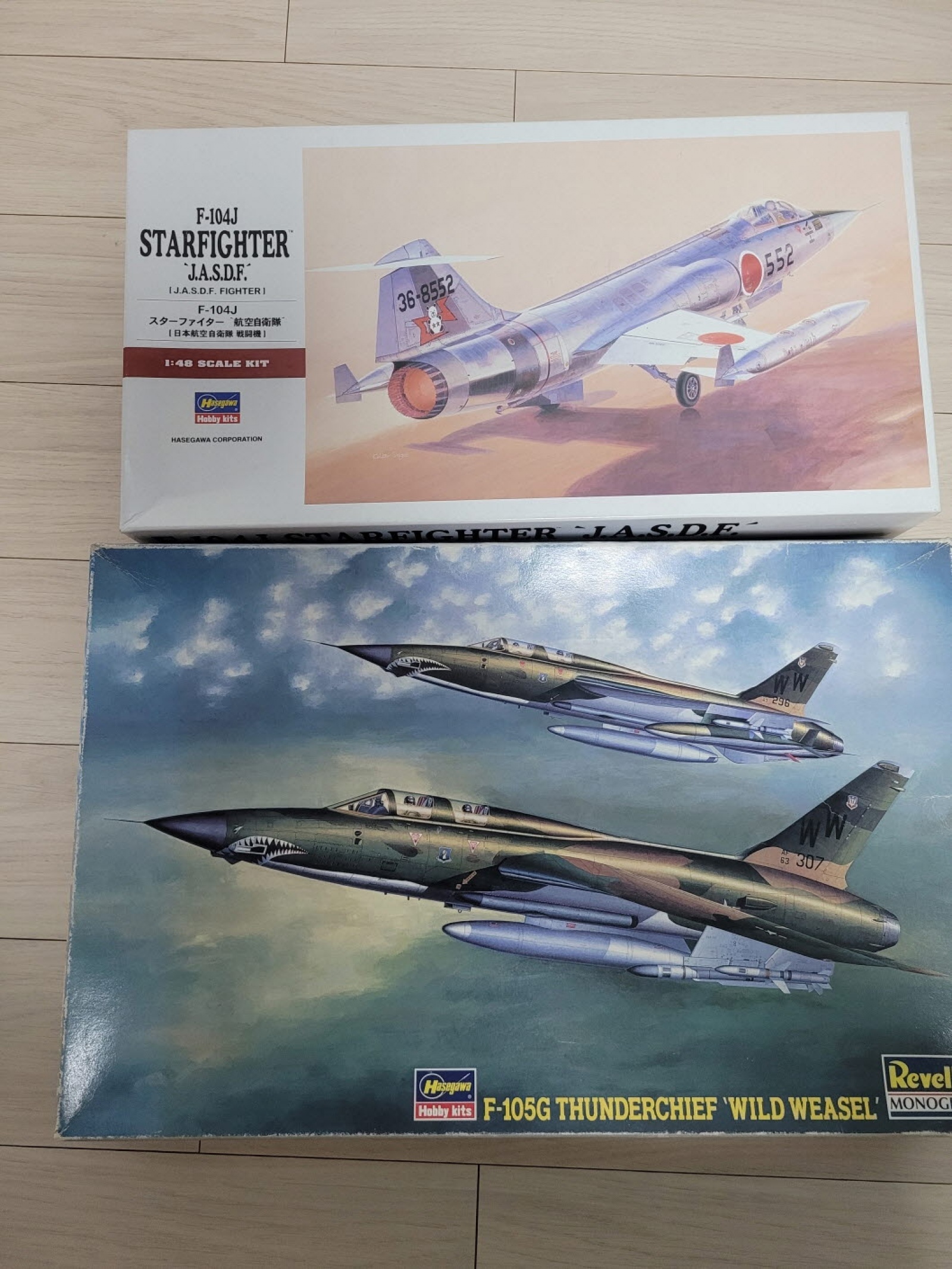 레벨/하세가와 1/48 F-105G(비닐개봉 일부부품 지퍼백보관/ 카르토그라프 / 수직미익 끝 살짝 부러짐 / 아이리스 휠베이 포함)
