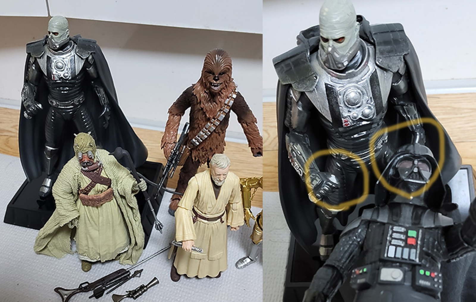 우측 다스베이더는 라이트세이버 분실, 투구안쪽에 접착흔적 있습니다.