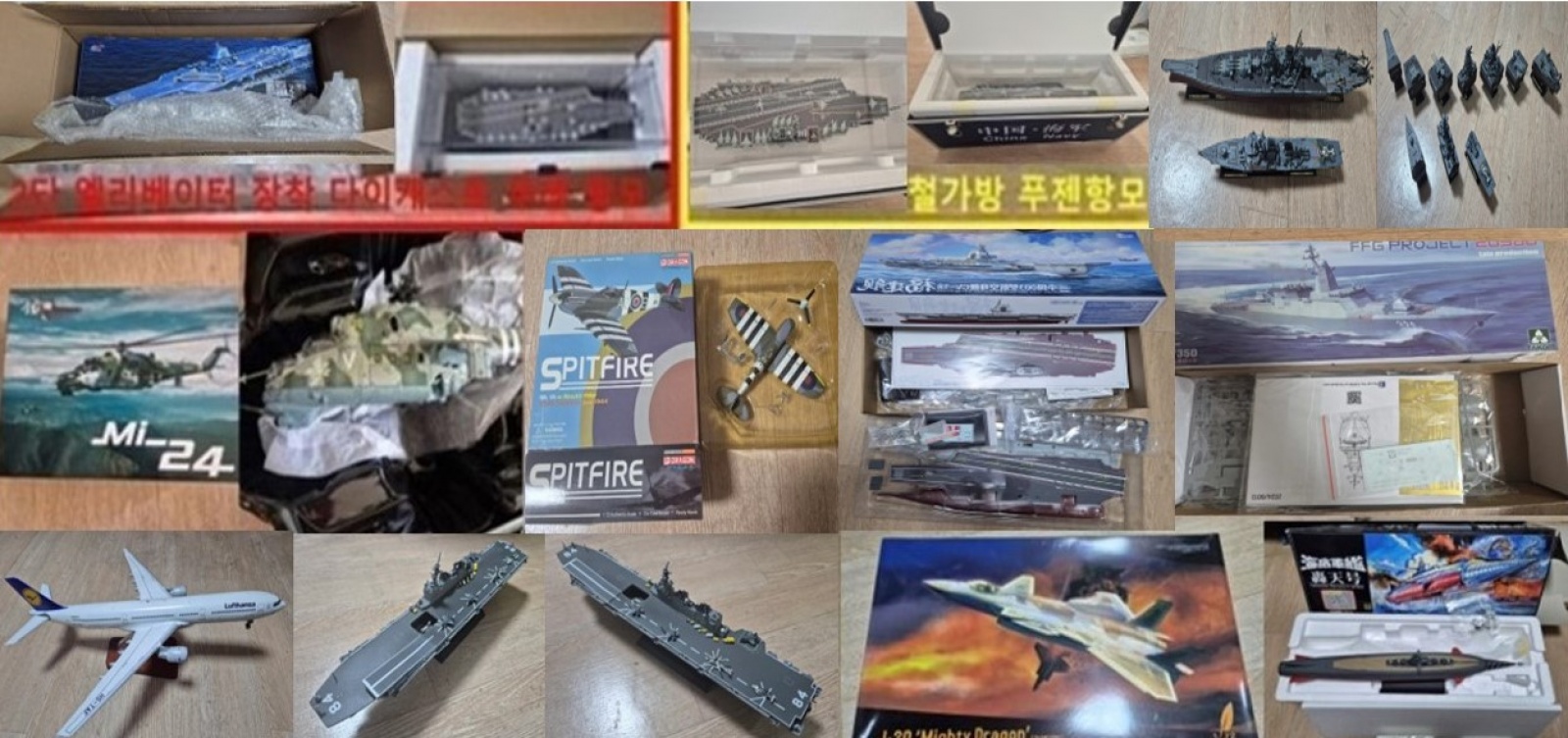 1/350~1/700 완성품 함선 및 미개봉키트, 1/144 완성품 여격기, 1/72 완성품 핼게, 전투기등 팝니다. 사실분은 공일공-육육75-육1육4로 연락주세요.