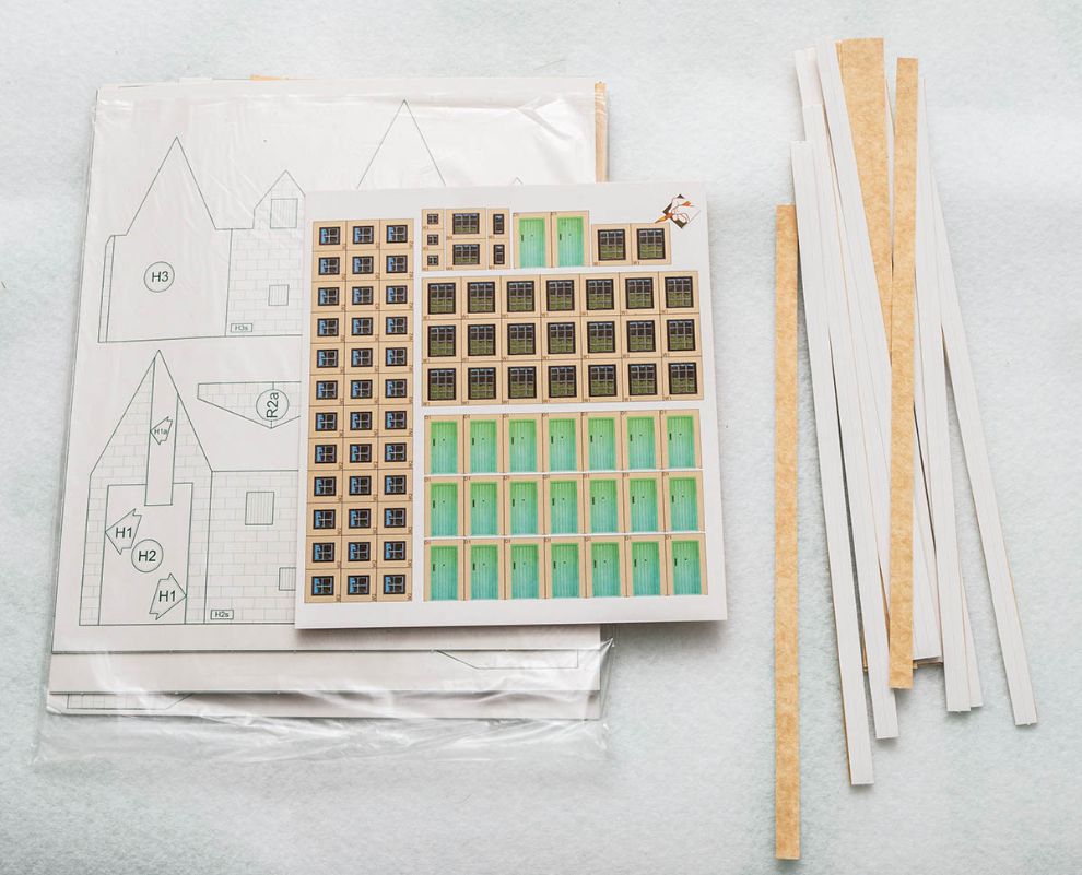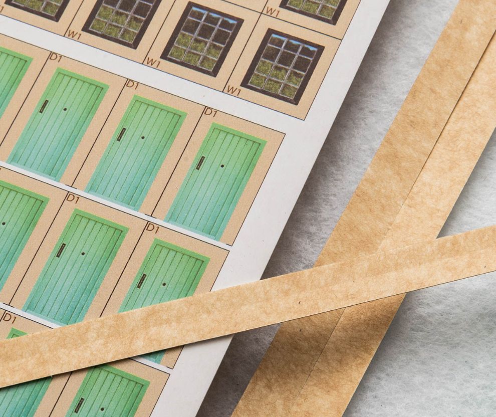 이건 세부 장식용 종이인데, 보다시피 퀄리티는 괜찮은 수준입니다. 종이는 양면 코팅이라 수분이나 오염에 어느정도 대항할 수 있으며 ,두께도 1mm 정도로 두껍고 튼튼한 편입니다. 가능하면 이것도 직접 나무문 등으로 바꿔주고 싶은데, 너무 부품이 작아서 손대기가 싫군요.