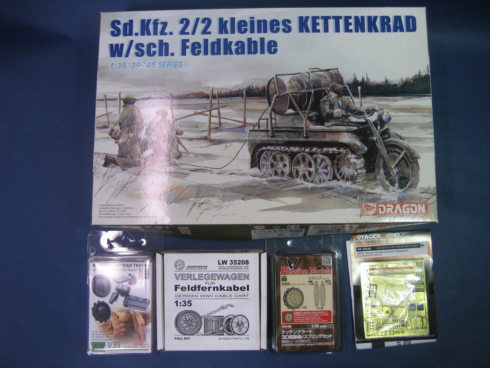 1/35 드레곤사 케텐크라드 통신케이블 버전 업그레이드 제품군 입니다. 드레곤사는 케텐크라드 라고 하고 타미야는 케텐크라프라드 라고 하더군요,, 박스아트에 명시 되어 있습니다^^ 의미의 차이는 모름니다요