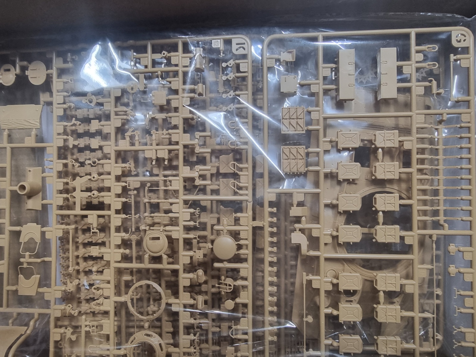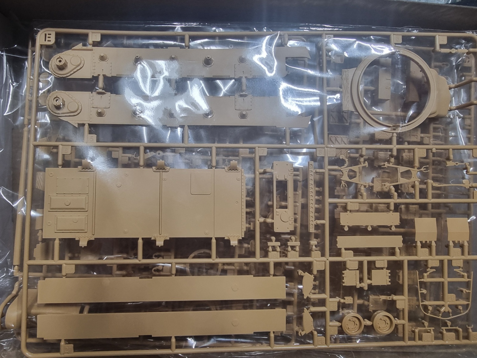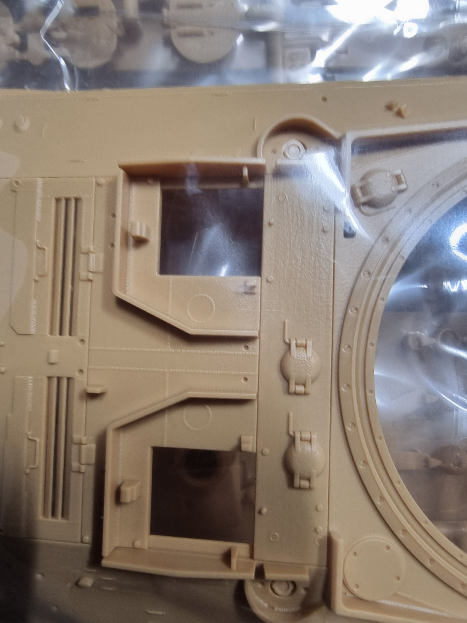 제가 전술한 "아카보다 부품이 작은 게 아닌가'의 이유... 공구함, 차외전화기 등 우리가 상상할 수 있는 모든부품이 회치기 분할없이 그냥 한덩어리입니다. 아카나 타미야조차 분할하는 부품도 한덩어리인 경우도 있으니까요. 물론 기술이나 고증이 훨씬 좋은 2025년의 키트이니 샤프함이나 정밀도는 당연히 이쪽이 높아보이지만...조립의 편의성이란 측면에선 당연히 이 쪽이 좋은 것이긴 합니다. 사실 그런 배려라기 보다는 정밀한 걸 원하는 사람들한테 업그레이드버전 팔아먹을려는 수작(?)인게, 그 복잡한 HVSS나 T80궤도는 기존런너를 그냥 쓸 수있으니 그대로 들어있습니다.(그래서 이 키트는 포탑 차체가 다 신금형임에도 뉴툴이 아니라 파트추가키트로 분류됩니다. 기존부분 품질이 그나마 좋은편이니 다행이지...).