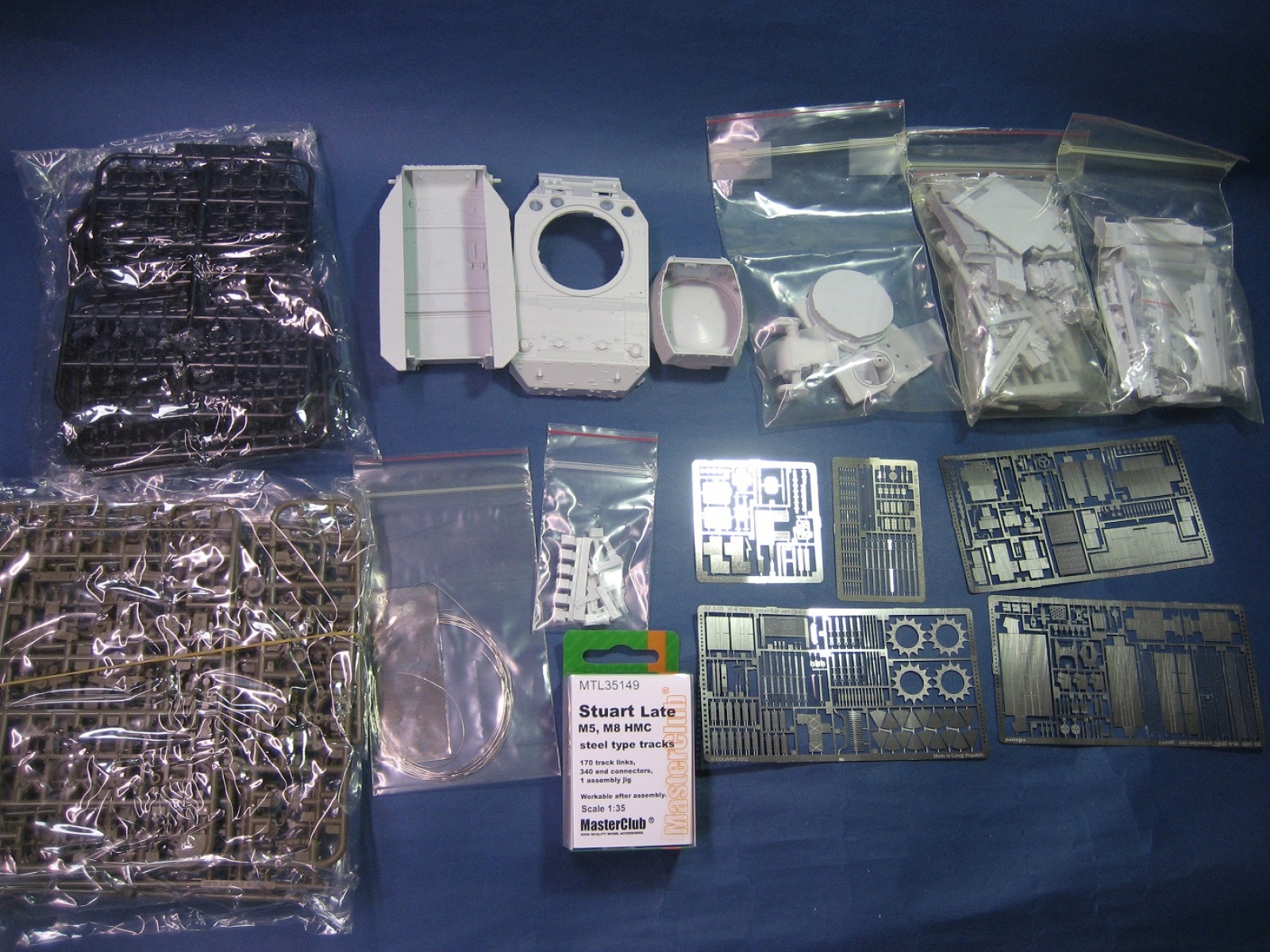풀레진 킷 은 서스와 궤도를 제외한 풀레진 이고 컨버전은 AFV클럽의 M5A1을 이용 M8 HMC 로 컨버전 하는 제품 입니다