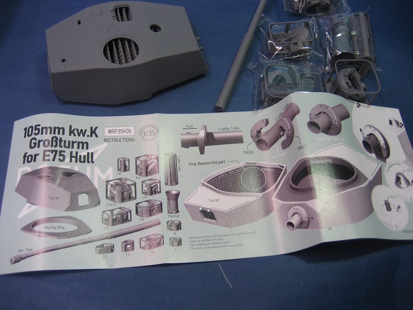 이번에 나온 제품은 리턴 로러가 장착된 버전이고 엔진 형식은 SLA 디젤타입 동일합니다 사진에서 보시면 하부 기동륜 부분이 차이가 있습니다 포탑은 이번이 처음 나온 제품이고 E50버전과 하부헐 이 같이 출시 되었습니다