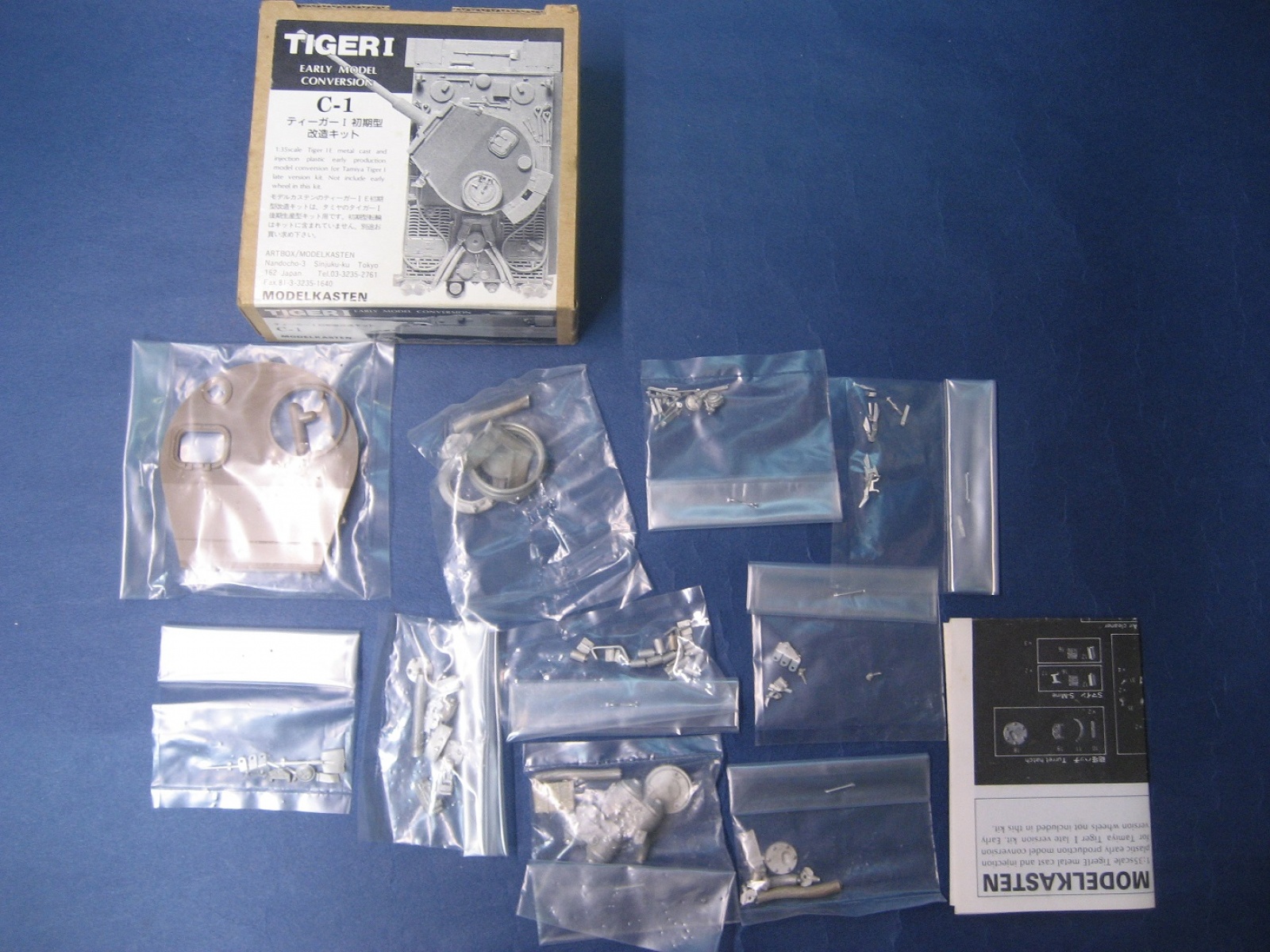 오래 동안 묶혀 있던 타미야 타이거1 입니다 어떤 제품을 올려볼까 하다가 프라탑 구석 맨아래에 눌려 있던 타이거를 발견 하고 이걸 언제 구입했는지 어렴풋이 기억을 돌려 봤는데 아주 꽤 오래전에 구입했었던가???? 박스 뚜껑을 여는 순간 이런 set팅이 되어 있는줄 잊어먹고 있었습니다 공짜로 얻은듯한 기쁨의 순간 이었습니다^^ 용가리사 타이거에 밀려 구입하고 등한시 했던것 같습니다 요즘에 나오는 킷에 비하면 보잘것 없는 제품이지만 set팅에는 나름 신경좀 쓴것 같습니다 그런데 이것이 타이거 후기형 인데 set팅된 물목이 전부 초기형 파츠업 부품들 입니다 후기형 을 초기형 으로 컨버전 하는 부품들 이었습니다 모델카스텐 제품으로 화이트 메탈 부품과 일부 프라부품들로 구성되어 있습니다 무슨 생각으로 이걸 구입했는지 기억은 없네요^^