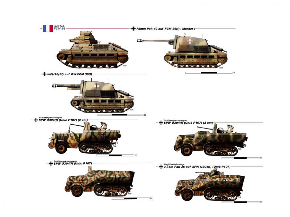 워낙 외형도 독특하고 프랑스군 FCM 36 전차와 프랑스군 하프트랙3종은 기본 스타일 그대로 프랑스군 사양으로 쓰고