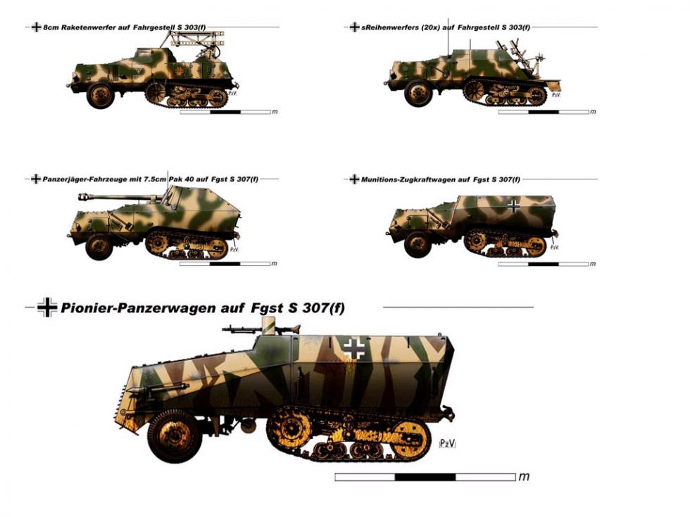 프랑스 전차와 장갑차를 노획하여 독일군들이 변형시켜 사용한 차량들인데