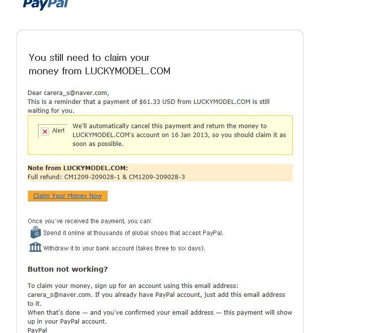 럭키쪽에 - 환불건에 대해서 - 재차 확인해 달라는 메일을 보내니 페이팔에 환급을 했으니 자기들 할 일은 끝났다는 투의 답을 보냈네요.
