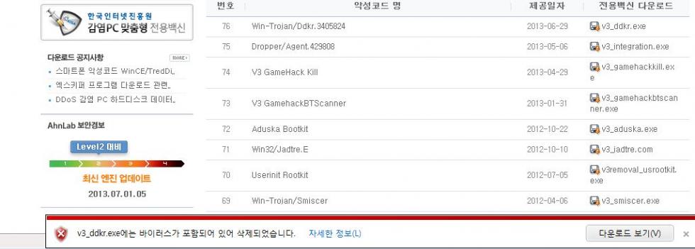 안랩에서 v3 를 다운받으려해도 안됩니다.