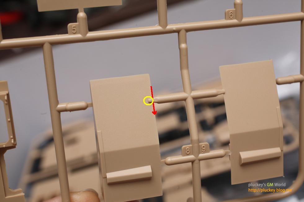 리뷰란에 있는 플러키님의 맹모델 불도저를 잘 봤습니다. 디테일이 또렷한게 상당히 끌립니다. 그런데 여러장의 런너 사진을 유심히 보면서 한가지 궁금한게 있더군요. 밑의 사진은 플러키님이 올리신 사진중 한장인데 런너에서 8번 부품으로 이어지는 부분이 좀 특이하게 생겼습니다. 이 사진의 런너만 이런게 아니고 여러 런너에서 연결부분이 이렇게 처리된게 보입니다. 일단 빨간줄 방향으로 절단을 하고 나면 노란색 부분이 남게 되는데 이부분도 제거를 해야하는지 아니면 이부분은 부품의 일부분인지 모르겠습니다. 만약 이부분도 제거를 해야한다면 왜 연결부위를 이렇게 설계했는지 궁금하군요.