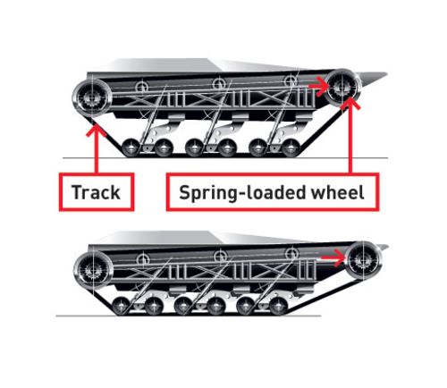 이런 식으로 궤도의 장력을 일정하게 유지해주는 유동륜이란 바퀴가 존재하지 않습니까? 유동륜을 포기해 전차의 중량을 줄이고, 그럼에도 불구하고 궤도의 접지면을 넓히기 위해 마지막 보기륜을 크게 만들어 장착한 것 같습니다만... 이렇게 유동륜이 없는 식의 궤도형 차량은 험지 주행시 응축된 보기륜 만큼 남아도는 궤도를 어떻게 팽팽하게 잡아당겨 유지하죠? 맨 뒤의 커다란 보기륜이 유동륜의 역할을 도맡아 한다고 하기엔, 바퀴가 연장 기능이 없는 강철 암에 달려있어 불가능해 보이고, 고속 주행시에는 이 바퀴 마저도 지면의 요철에 따라 마구 흔들릴텐데 장력 유지는 커녕 오히려 궤도가 요동치는 걸 붙잡아줄 수도 없어 보입니다. 그럼에도 불구하고 스튜어트가 전장을 누비며 이런저런 활약을 한 걸 보면 제가 알지 못하기계적 원리가 숨어있는 것은 아닐지...