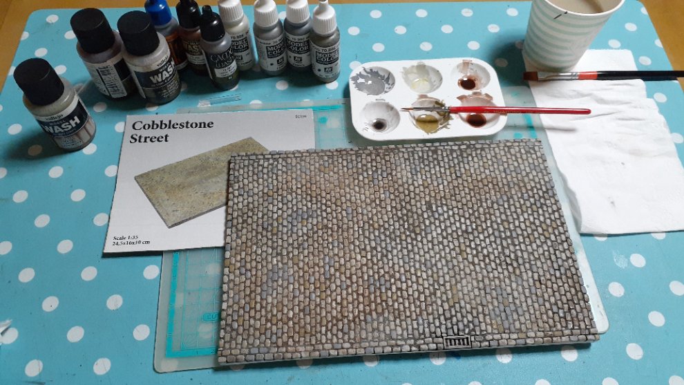 사진과 같은 코블스톤 바닥에 전차를 올리려고 작업을 하고 있는데요...