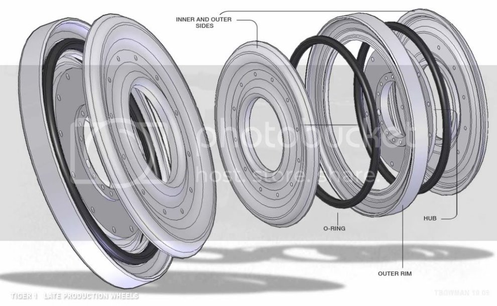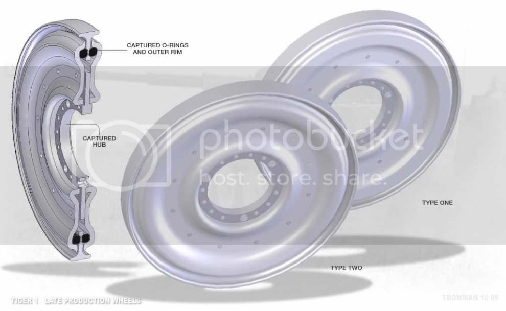 1/16 키트들에서는 철제 바퀴들이 잘 재현되어 있고, 1/35에서는 아카데미 킹타이거, 타미야 야크트타이거, 하비보스 킹타이거 등에서 이중 부품으로 나와 있습니다.