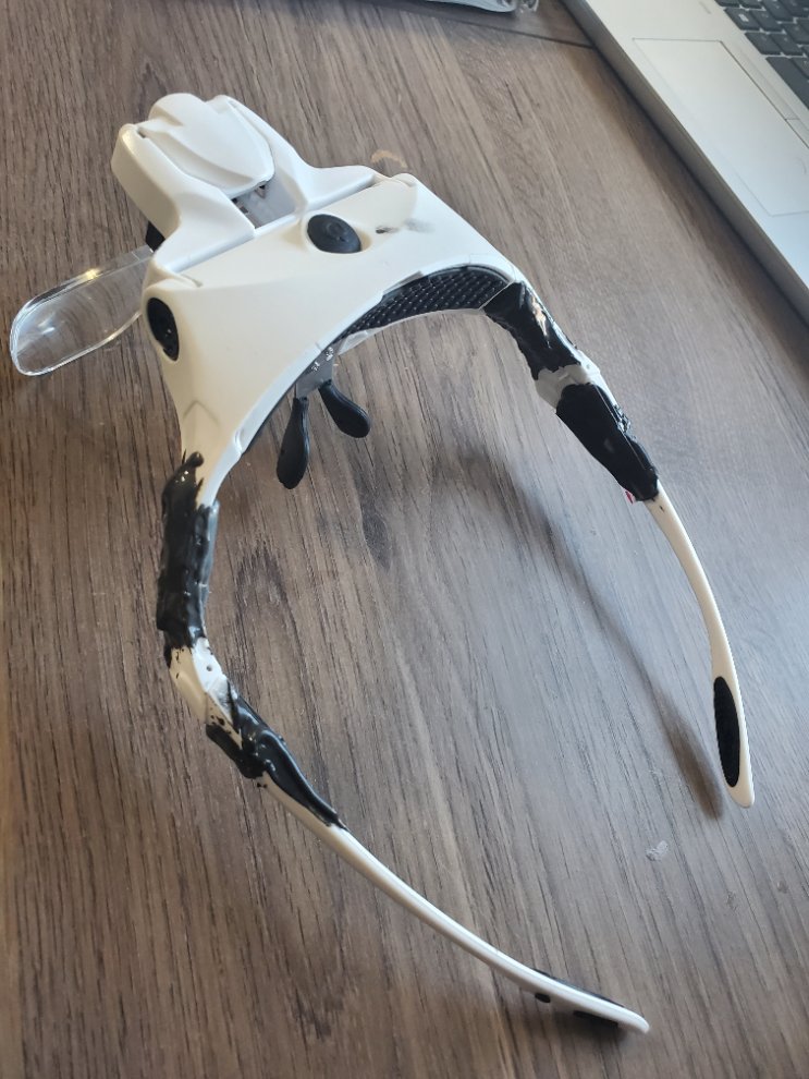 렌즈 자체는 모형하기에 문제없이 잘쓰고 있고, LED라이트는 거의 안쓰고 있는데, 프레임이 싸구려 플라스틱으로 만들어서 그런지, 아니면 내 머리가 평균이상으로 커서 그런지 자꾸 프레임이 자꾸 크랙이 생기네요. 한군데 보수하면 다른곳이 크랙이 생기고, 와이프가 그냥 하나 괜찮은거 하나 사라고 하나요.