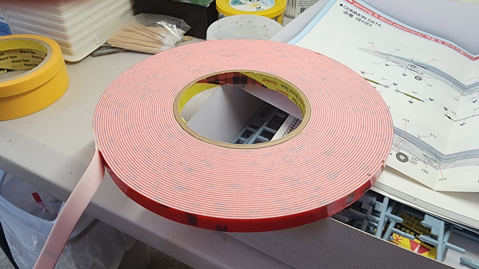 사진의 3M 양면테이프를 십여년 전에 대량구입해서 도색시에 잘 사용했습니다.(작은 부품을 붙여놓고 도색하는 용도로 사용)