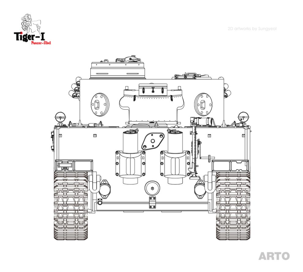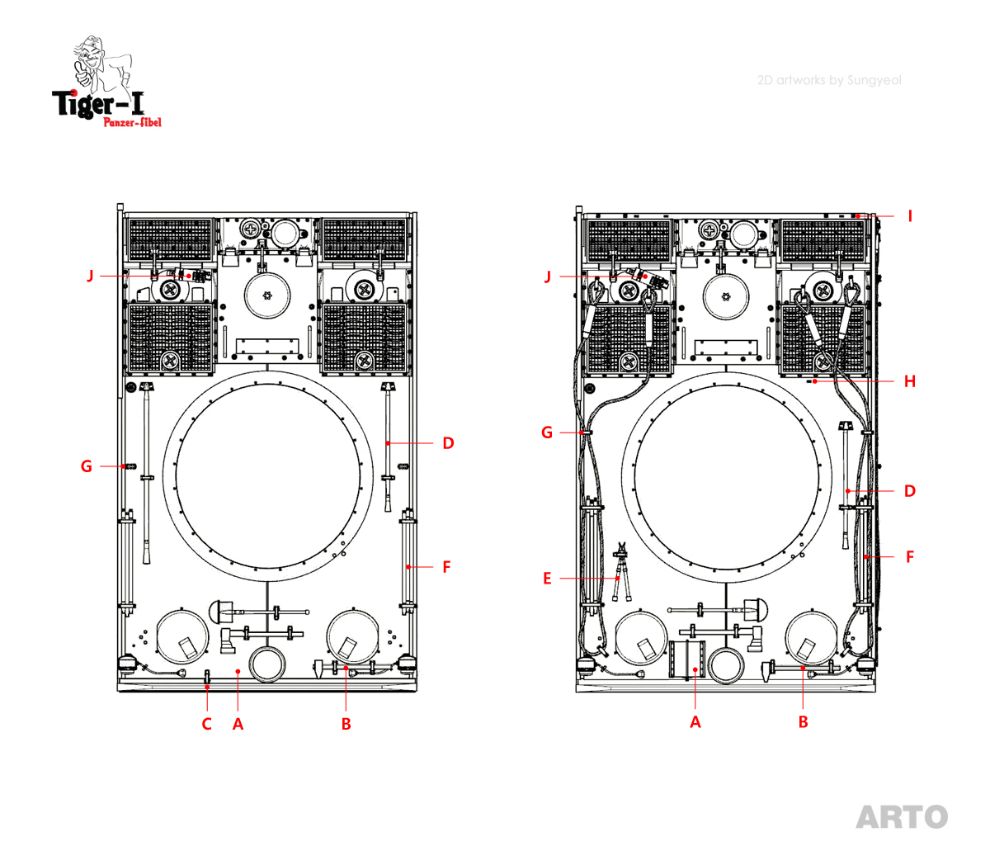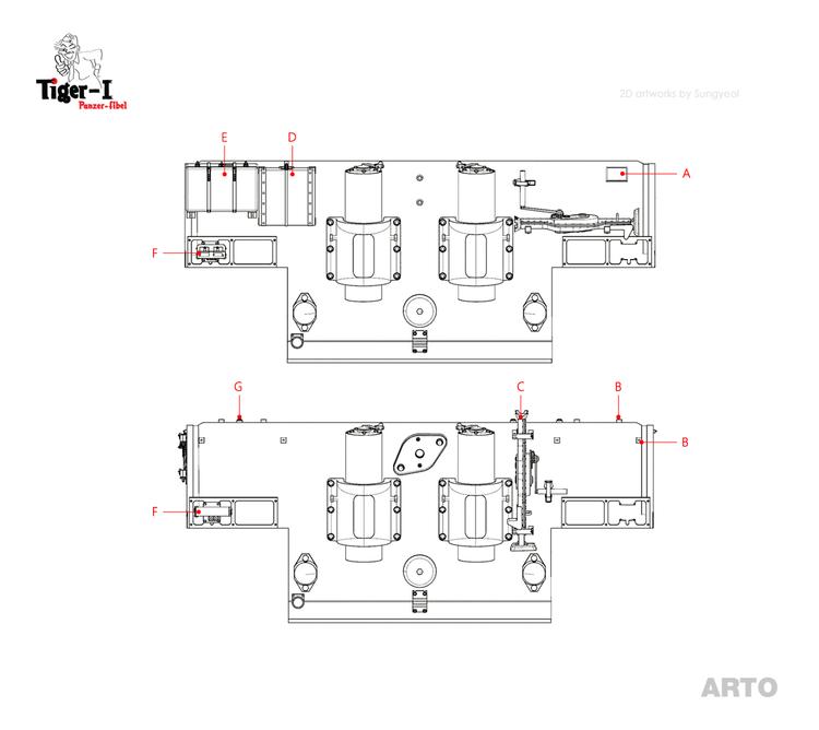 G) 마지막으로 후방장갑 상단에는 엔진데크 덮개를 위한 작은 고리 3개가 새로이 부착되었습니다.