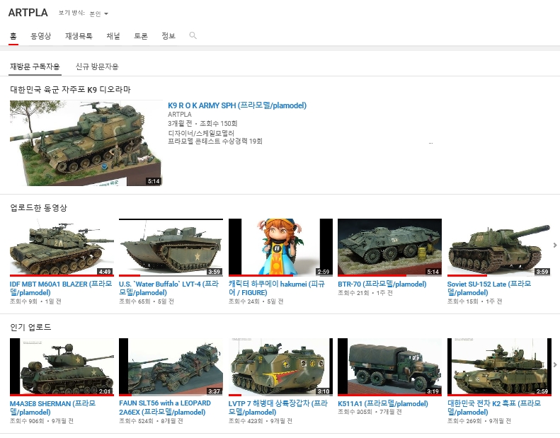YouTube 프라모델 ARTPLA 개인채널 안내입니다.