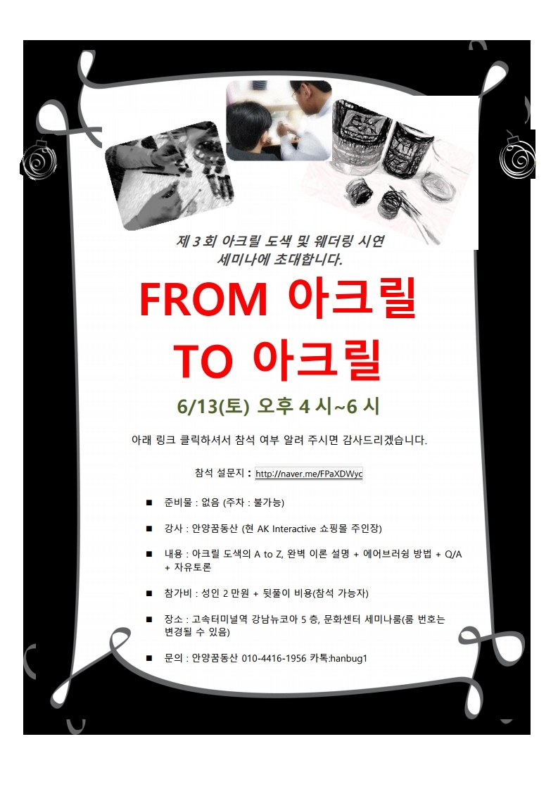 한국에 아크릴 도색 전파를 위한 특별 세미나를 하려고 합니다.